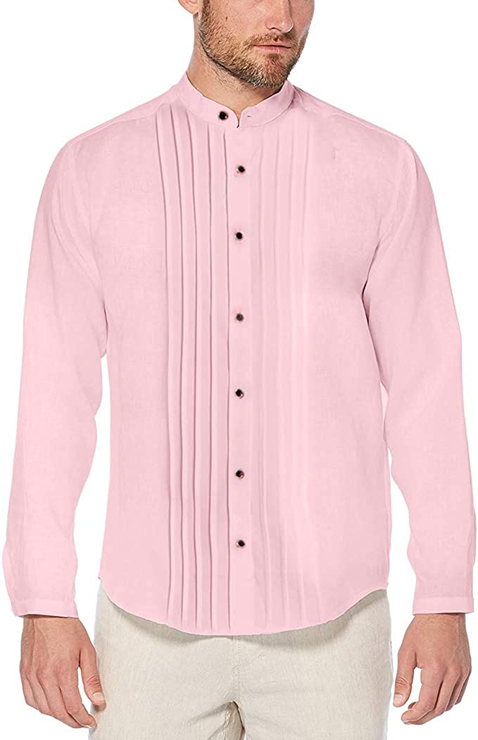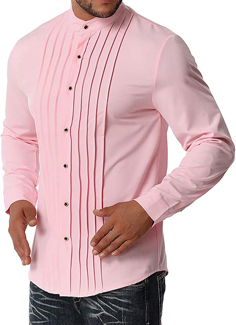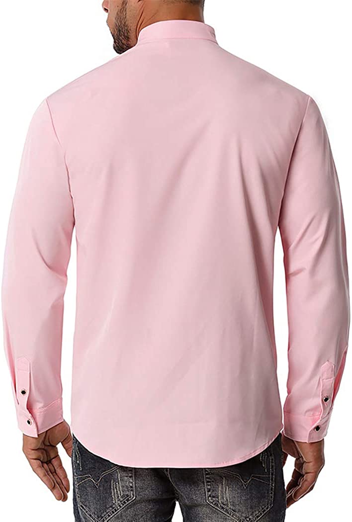 Miqieer Casual Men's Slim Fit Long Sleeve Shirt Henley Neck Blouse Laydown Collar Tops