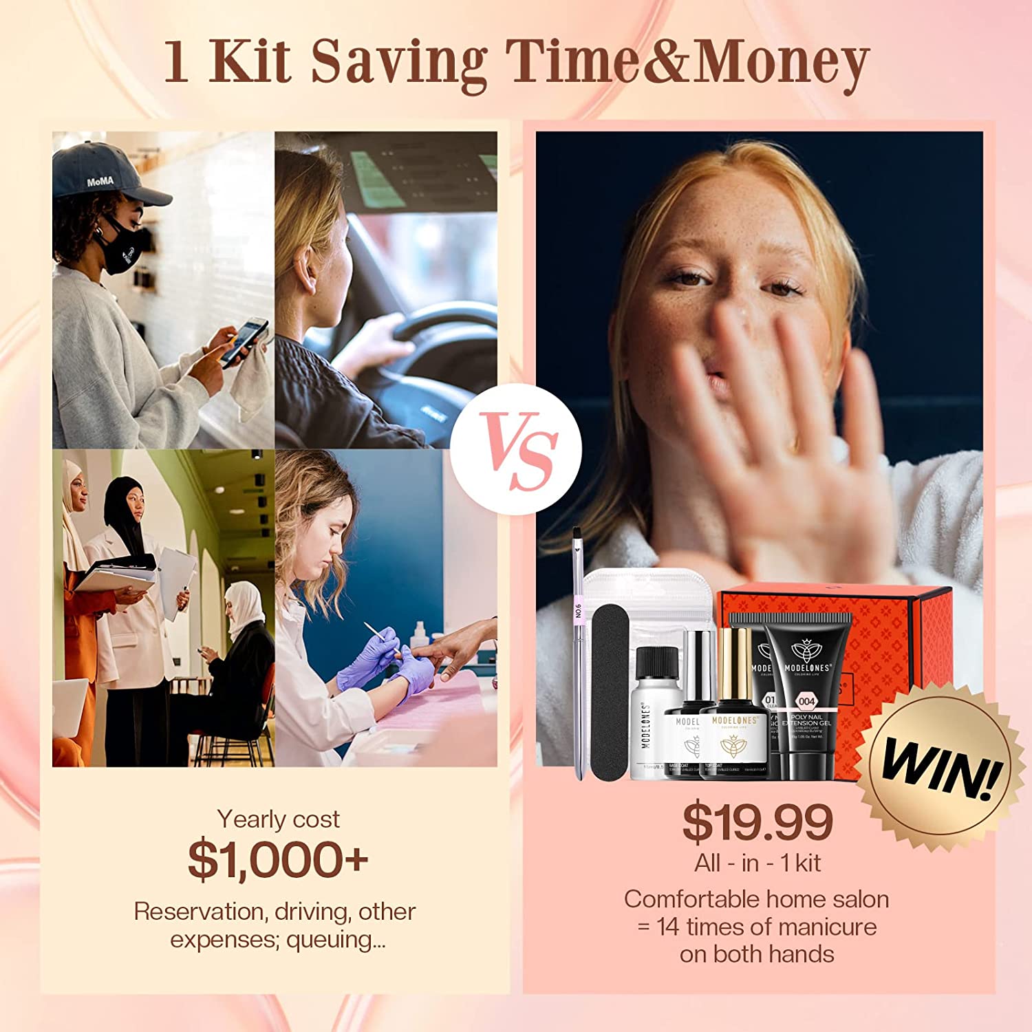 Modelones Poly Nail Gel Kit 30ml 2PCS With Slip Solution Extension Builder Enhancement Professional Starter Kit All-in-One Nail Technician French Kit