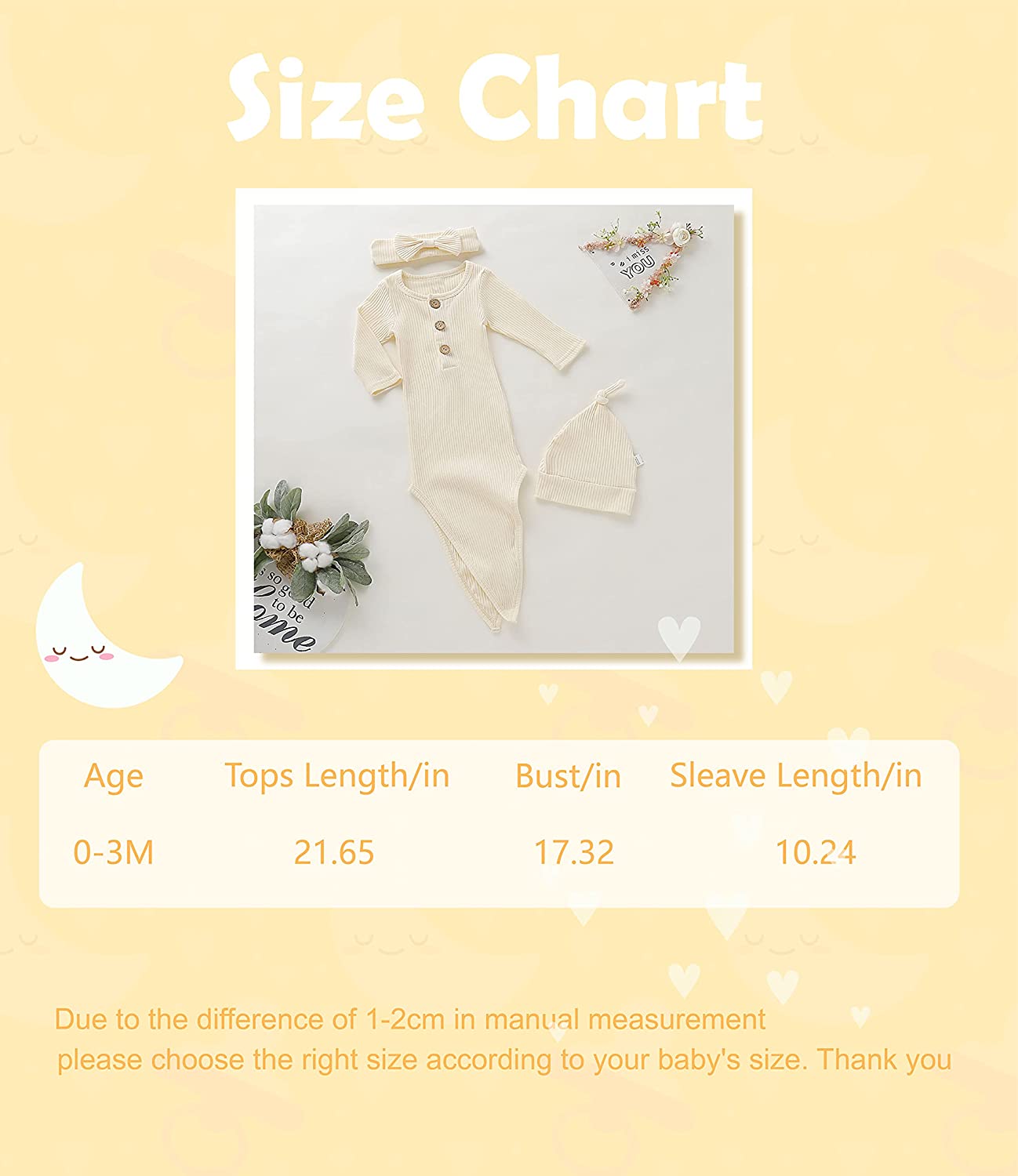 Baby Gown Newborn, Knotted Infant Sleeper for Baby Girl and Boy Material:Cotton Suitable for 0-6M Size:Bust: 44cm/17.32inch,Length: 55cm/21.65inch