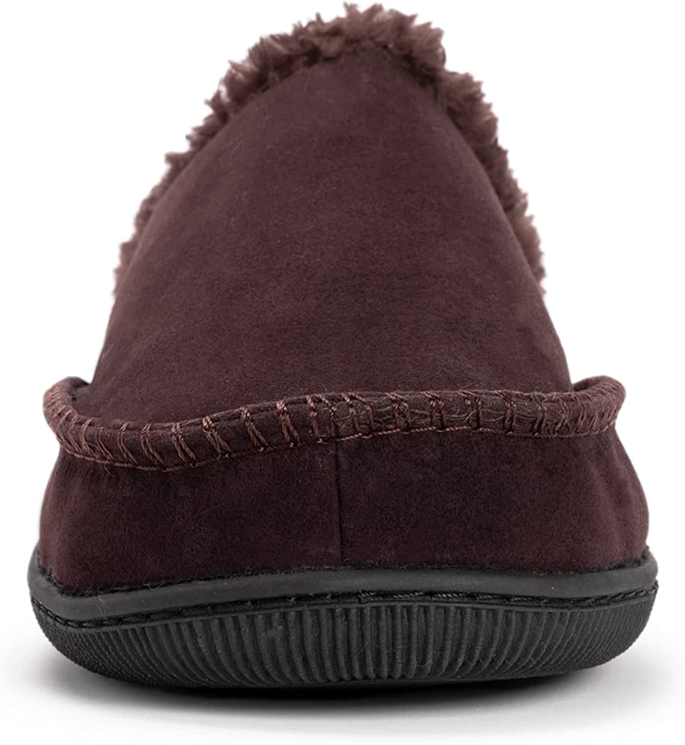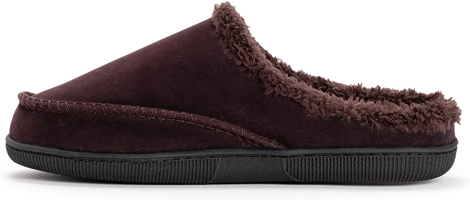 Men's Faux Suede Clog Slippers comfortable sweater knit body keep your feet warm and cozy around the house (or running errands - we won’t tell). Hand wash in cold water, no bleach, dry flat. Imported.