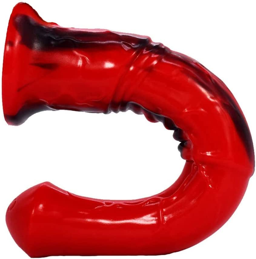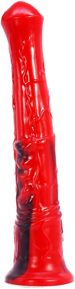Multi Color Soft Flexible Animal Artificial Horse Dildo Silicone Dildo Toy Adult Sex Toy for Women with Suction (Red+Black)
