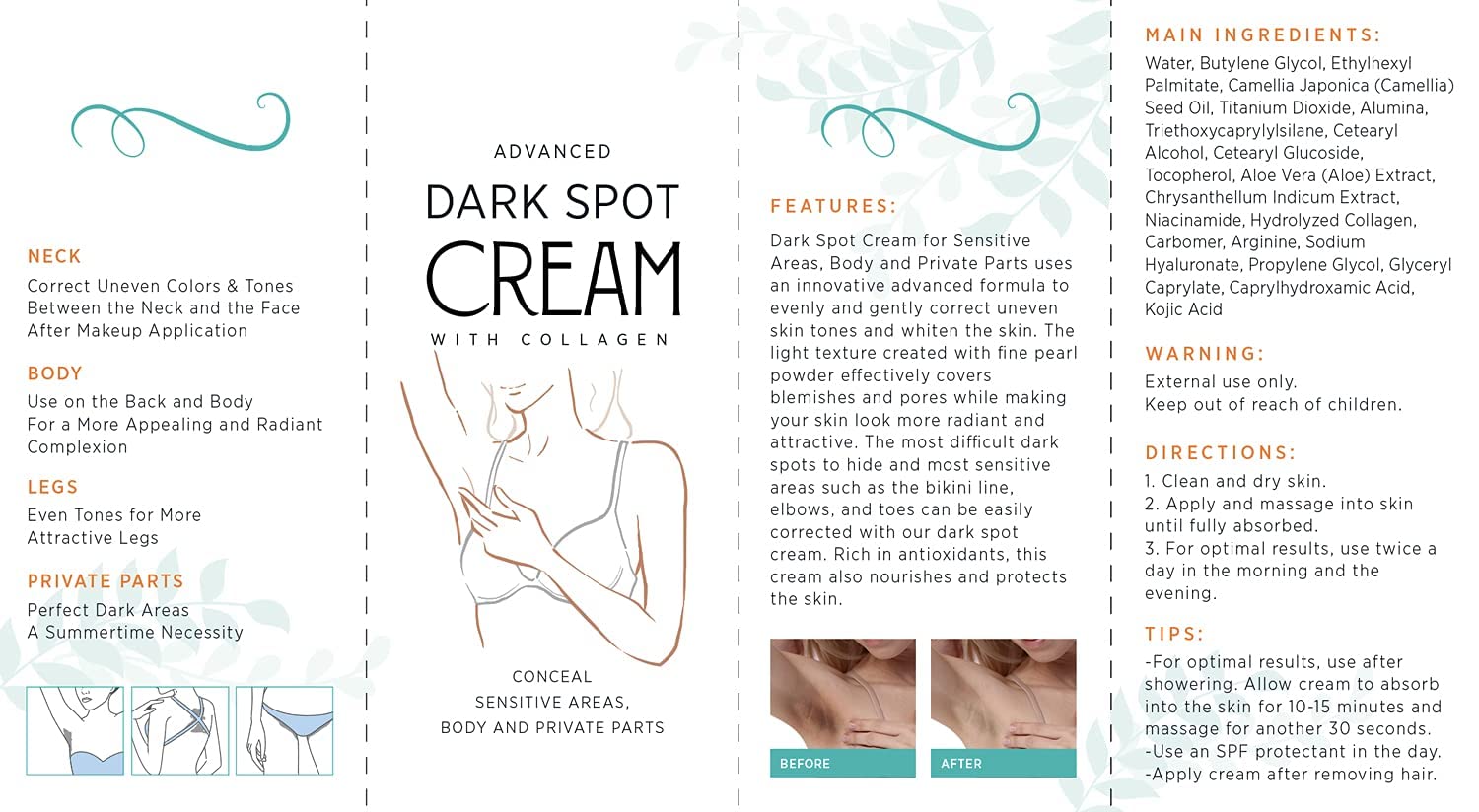 Natural Vine Underarm Cream, Dark Spot Cream, Instant Result, Moisturizes Armpit, Neck, Knees, Private Parts(60ML)