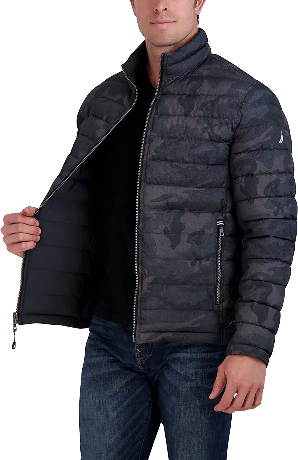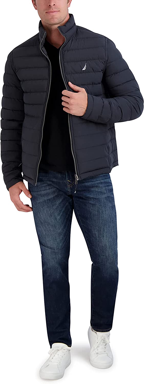 Nautica Men's Stretch Reversible Midweight Puffer Jacket, Wind and Water Resistant