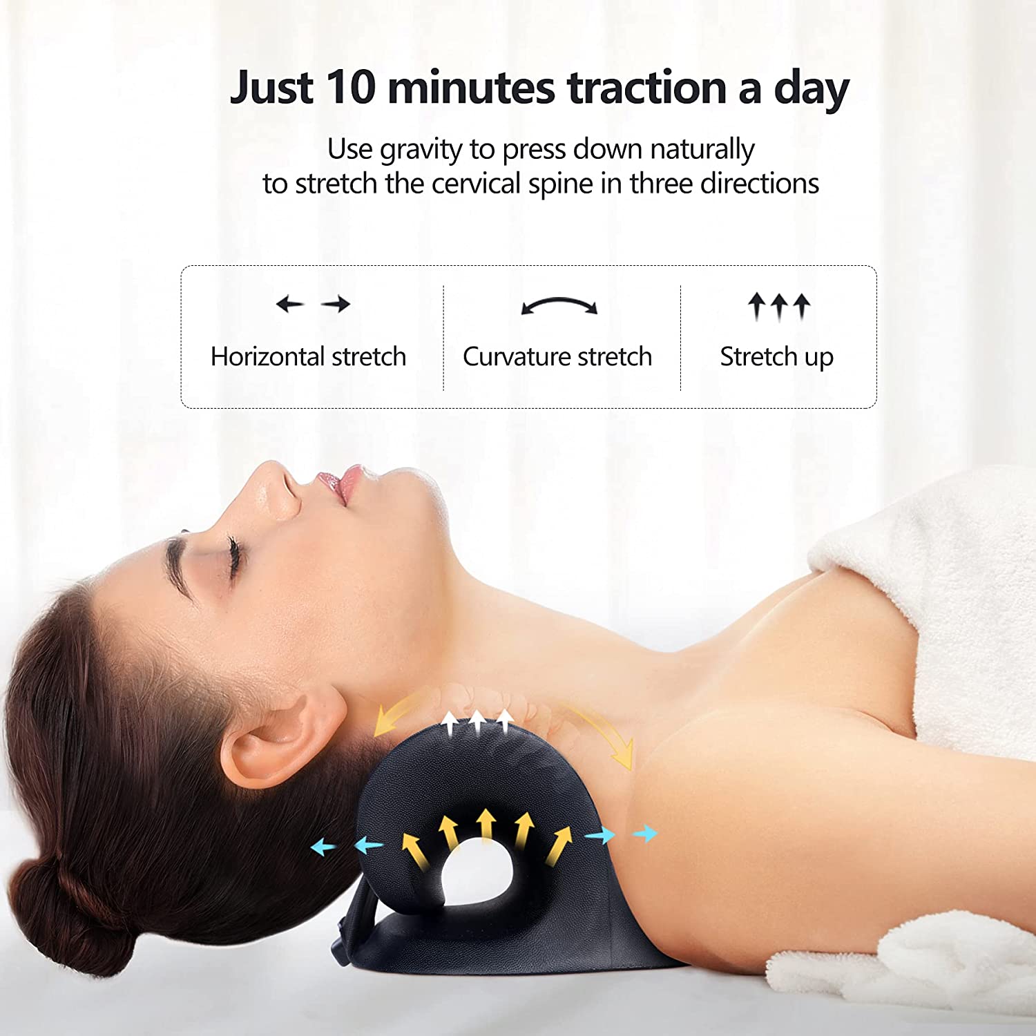 Neck Stretcher for Neck Pain Relief, Heated Cervical Traction Device Pillow with Graphene Heating Pad, Neck and Shoulder Relaxer for TMJ Pain Relief and Cervical Spine Alignment(Black)