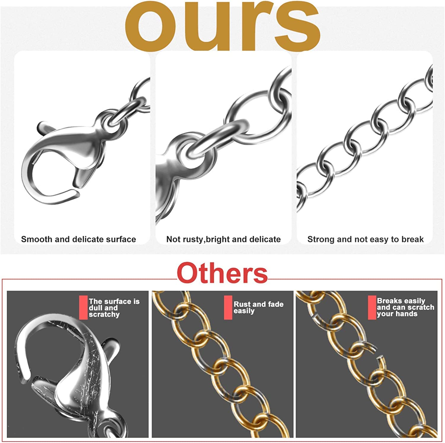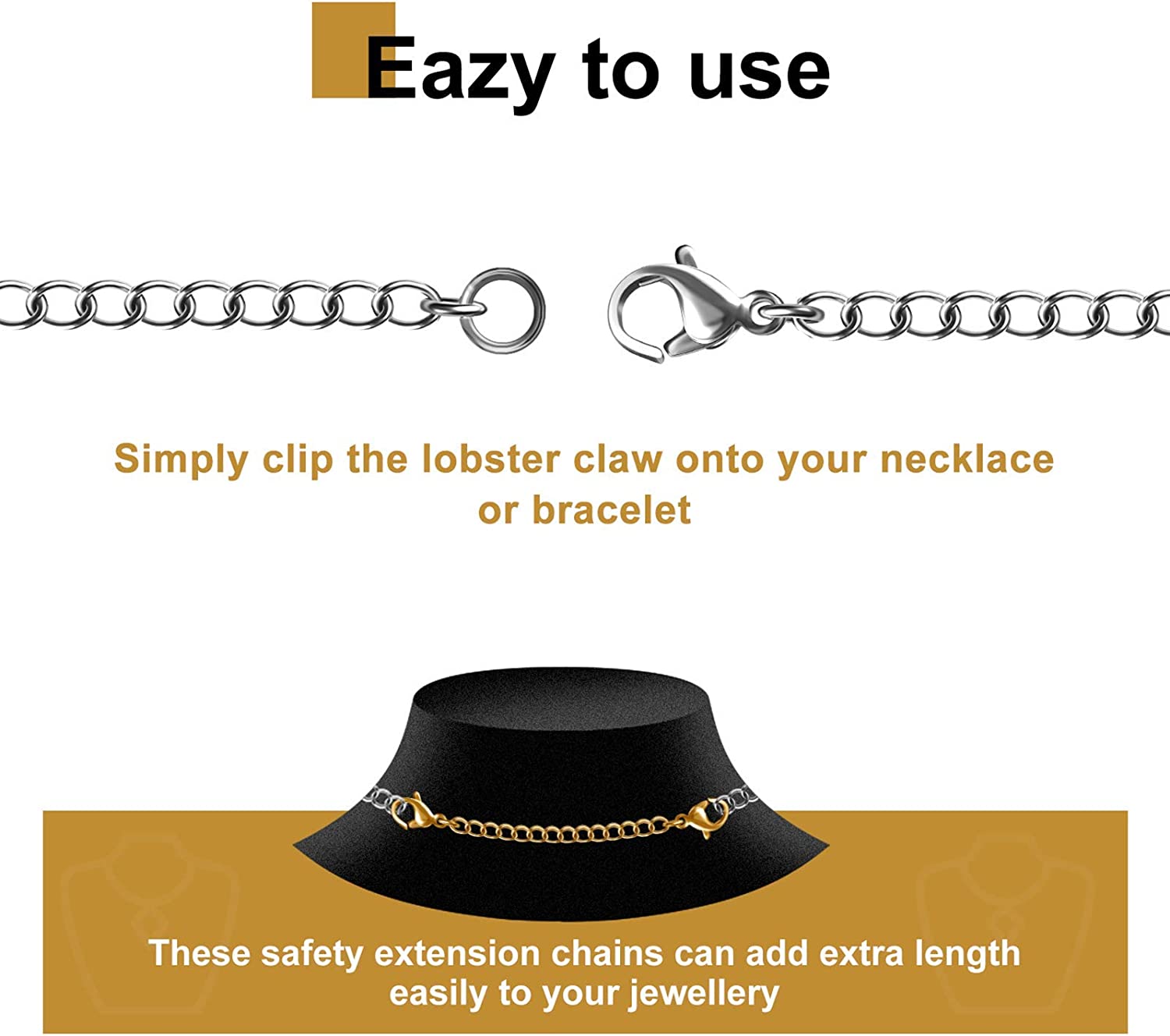 Necklace Extenders, 10Pcs Stainless Steel Gold Silver Necklace Bracelet Anklet Extension Chains with Lobster Clasps and Closures for Jewelry Making