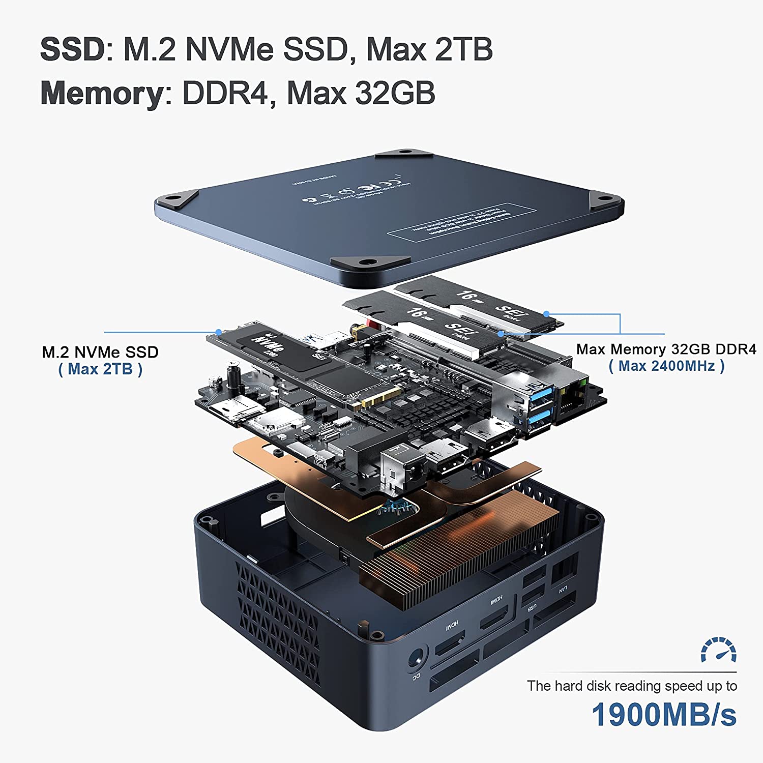 New 8th Generation Intel 4 Cores 8 Thread i5-8279U Processor(up to 4.1Ghz),Win11 Pro Beelink Mini pc with 16G DDR4 RAM/500GB NVMe M.2 SSD, Support 4K Dual HDMI Display,WiFi5,BT5.0, 4*USB 3.0