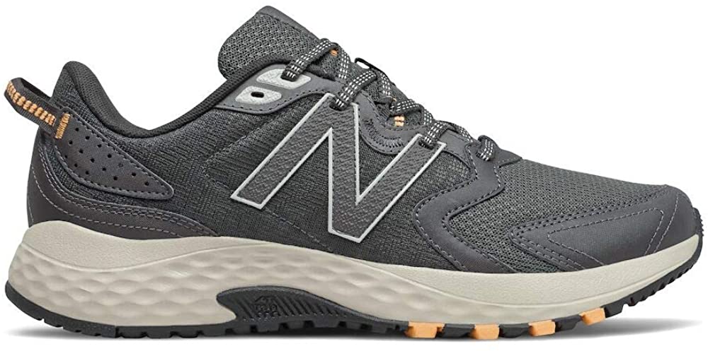 The New Balance MT410V7 helps you expand your running routes with an AT Tread outsole for reliable traction on both on and off-road terrain. These men's trail running shoes have a soft midsole for underfoot comfort and durable overlays for lasting wear. The ripstop nylon material and understated silhouette add style and versatility.