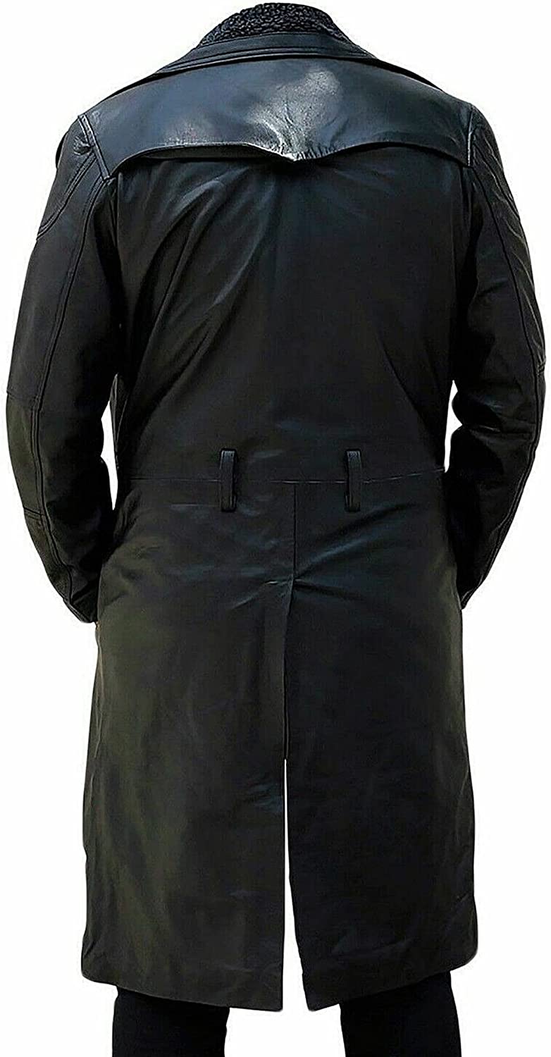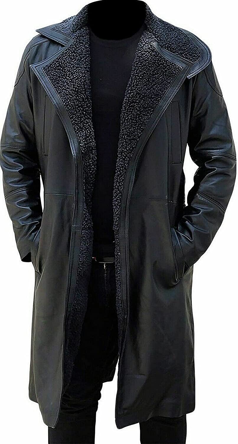 NEW GERMAN CLASSIC WW2 BLACK FULL FAUX FUR REAL SHEEPSKIN LEATHER TRENCH LONG WINTER DUSTER COAT JACKET FOR MEN