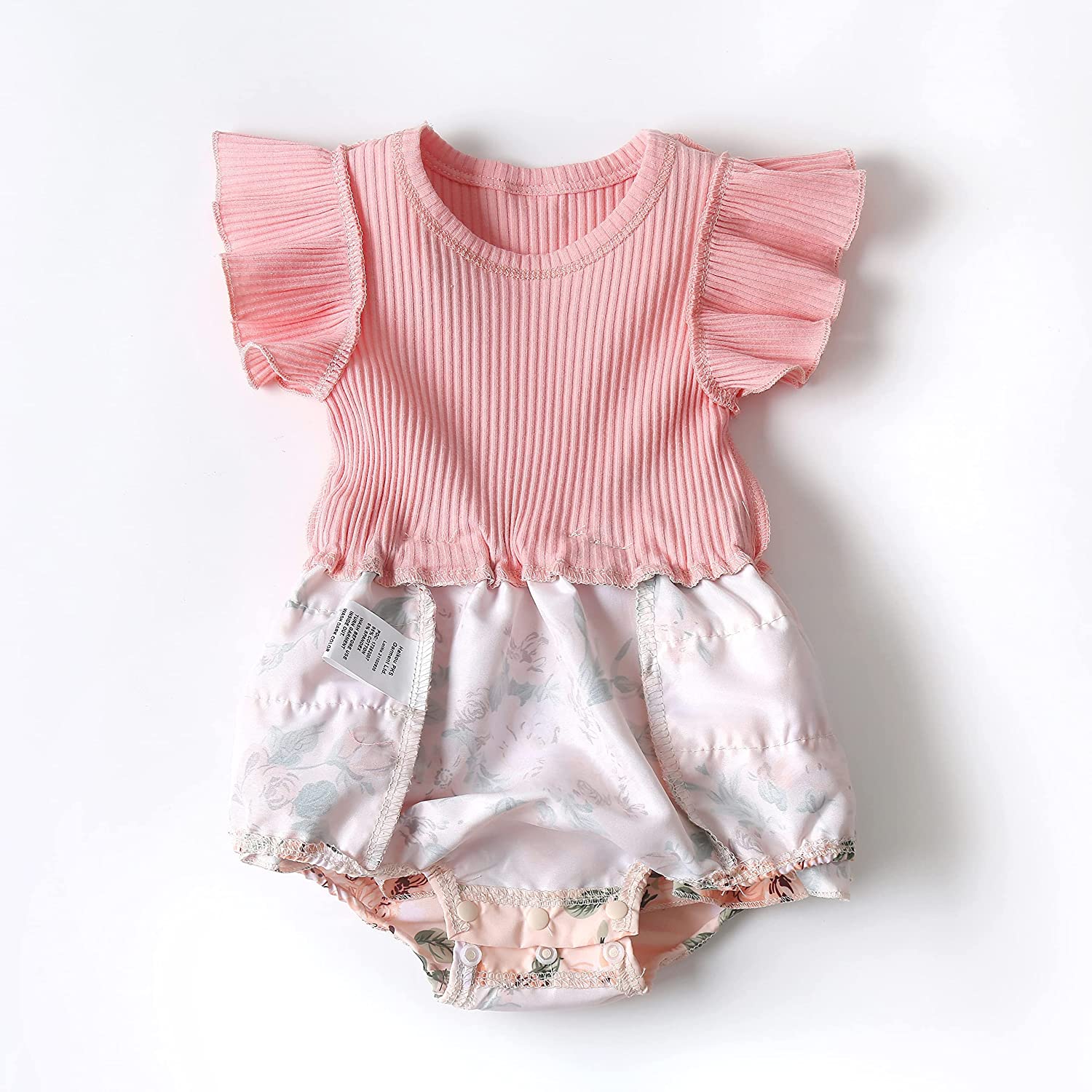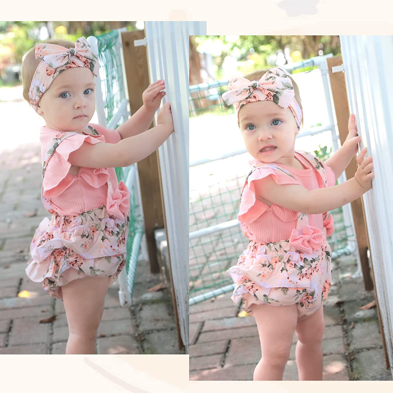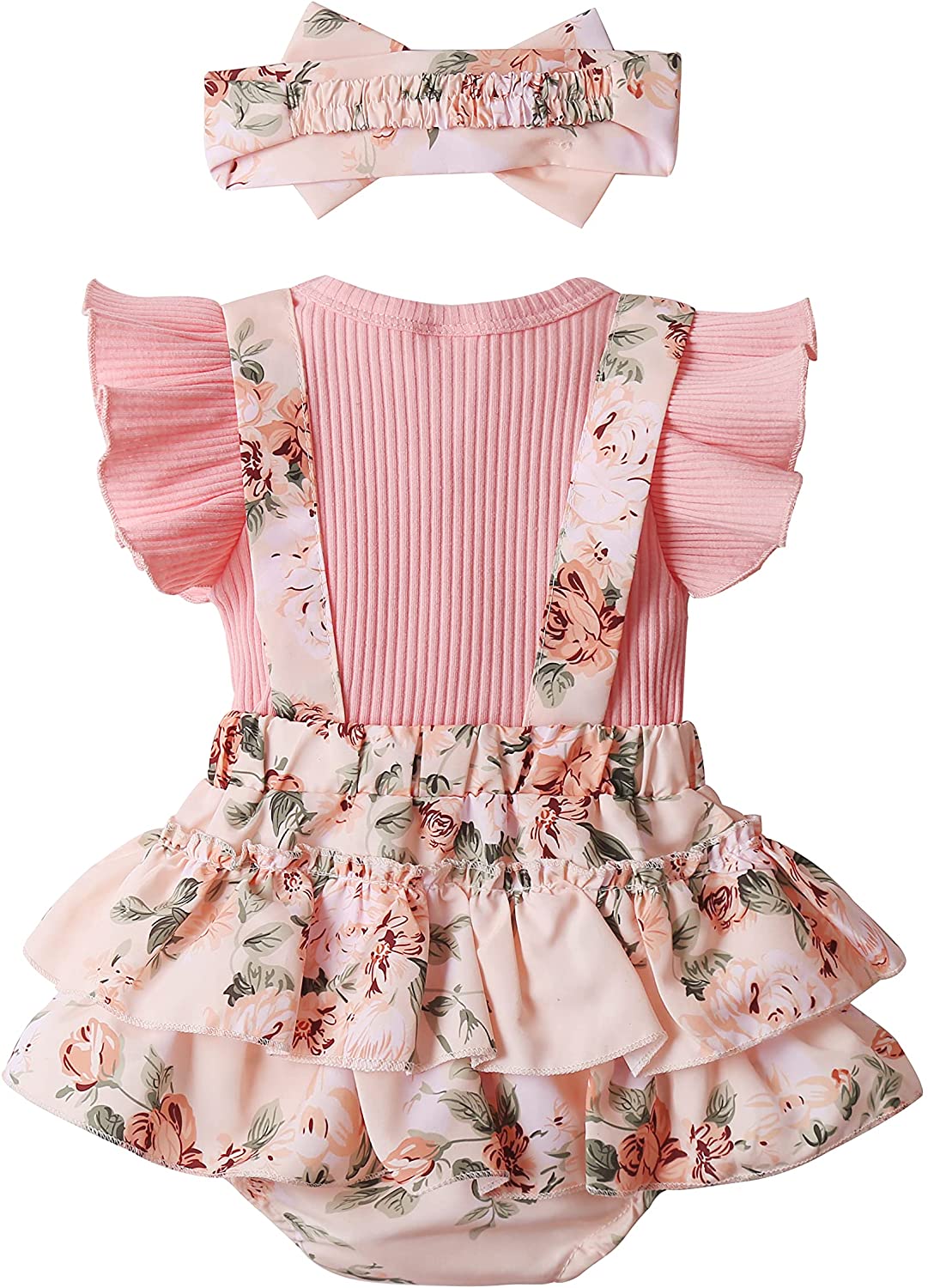 Newborn Baby Girl Clothes Infant Romper Floral Suspender Dress Ruffle Sleeve Onesie Outfit Jumpsuit Headband Spring Summer