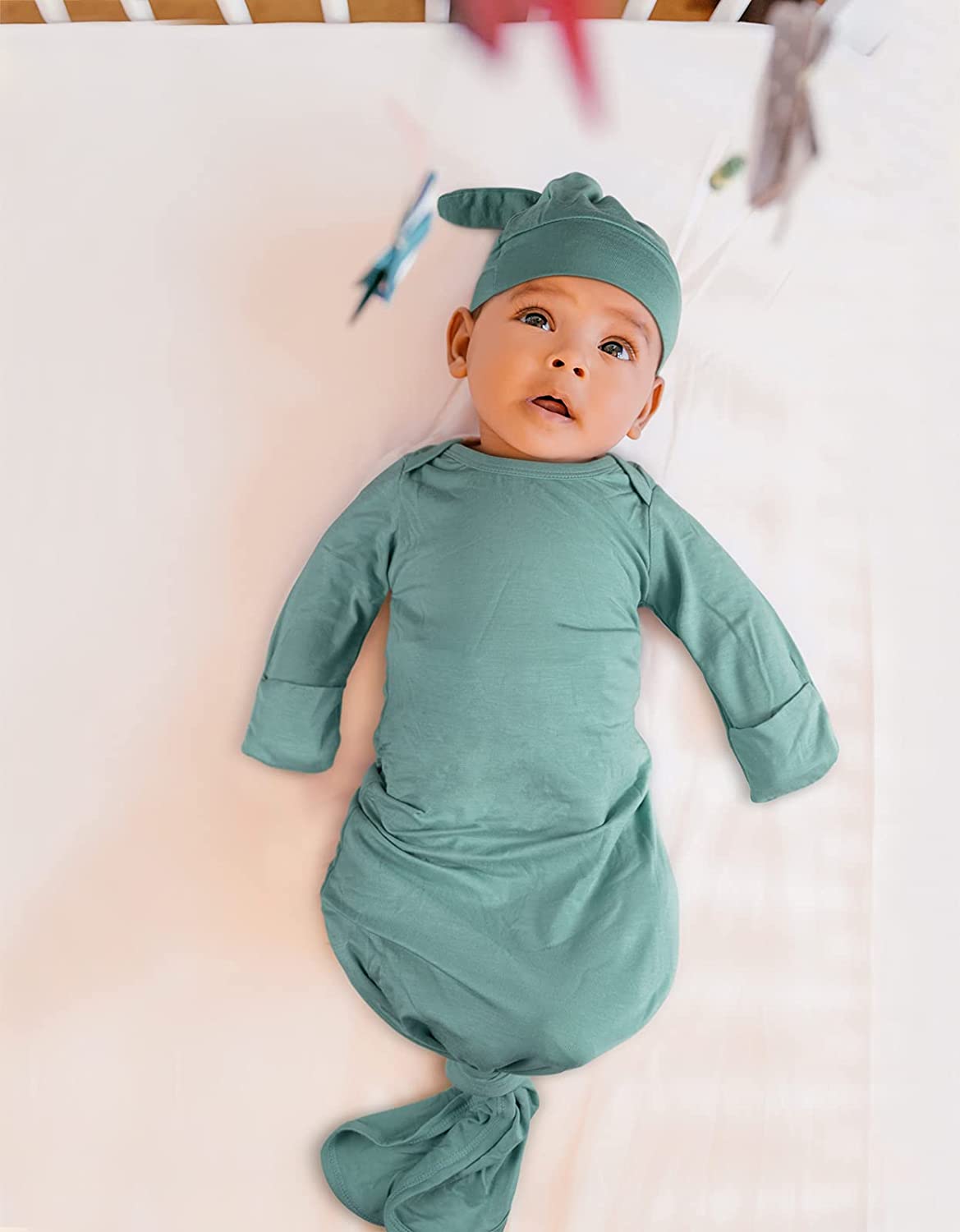Newborn Baby Knotted Gown, Super Soft Silky Infant Sleeper, Baby Girl Sleep Gown with Mittens, Bow, and Hat Set