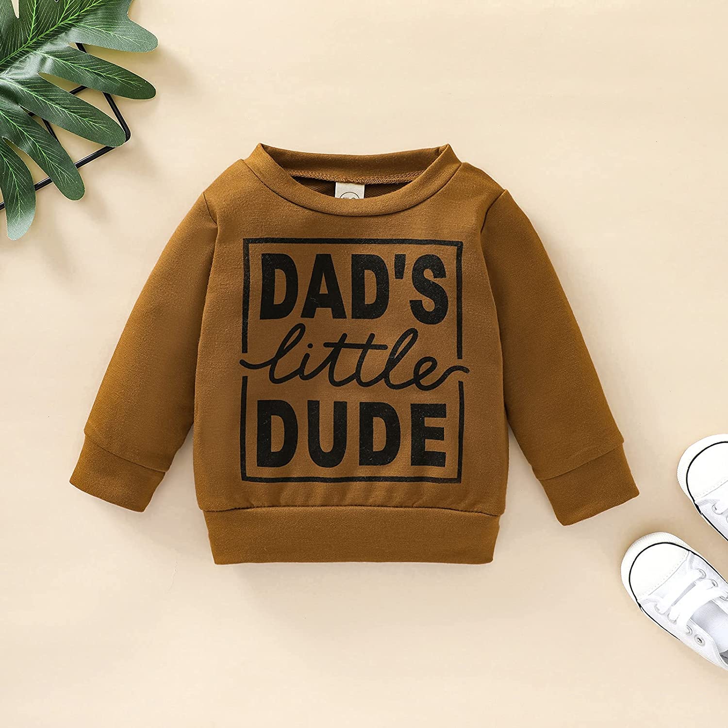 Newborn Infant Baby Boys Pullover Dad's Little Dude Sweatshirt Long Sleeve Casual Sweater Fall Clothes