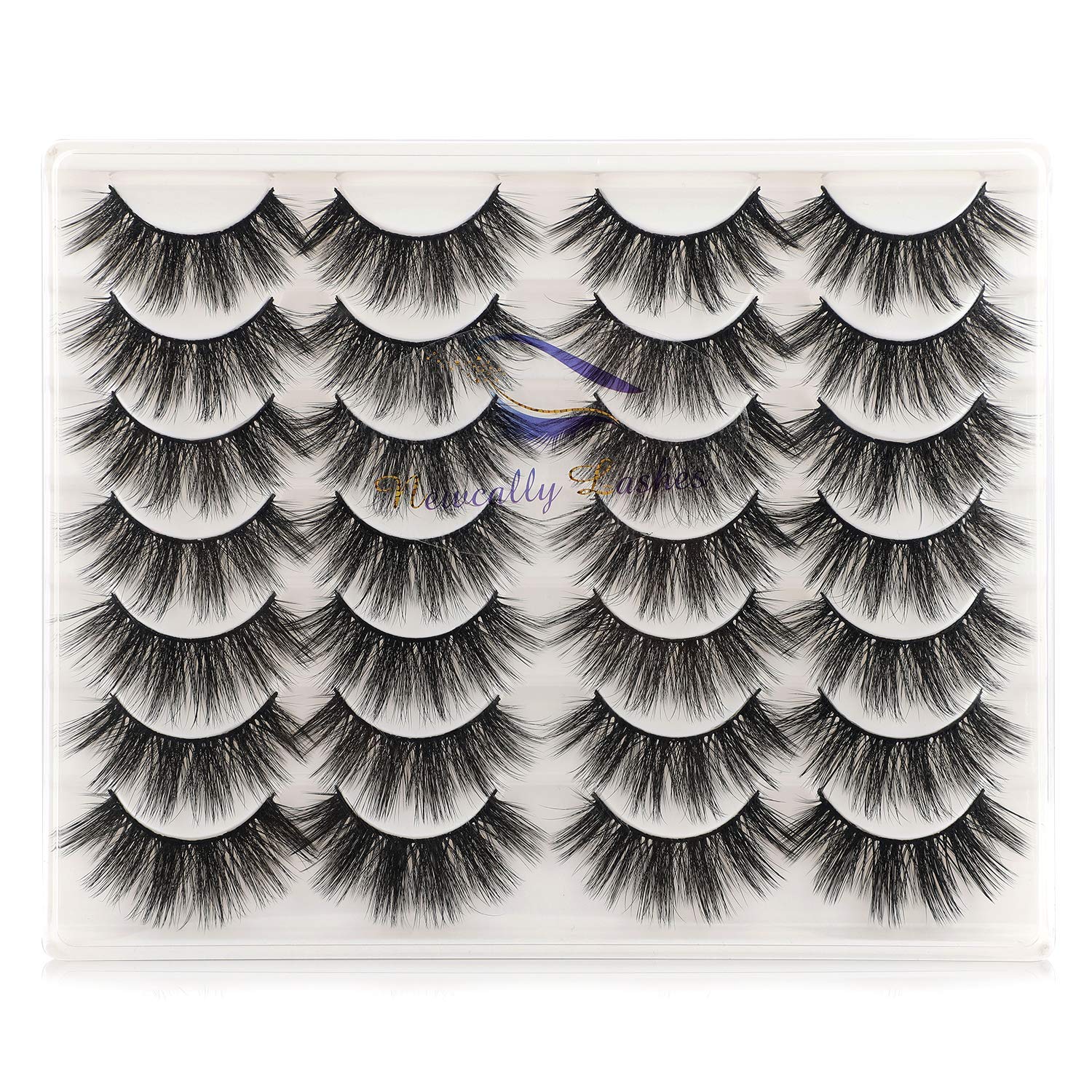 Newcally Lashes False Eyelashes Dramatic 20MM Faux Mink Lashes Pack 14 Pairs Wispy Long Thick Fluffy Strip Eye Lashes Multipack