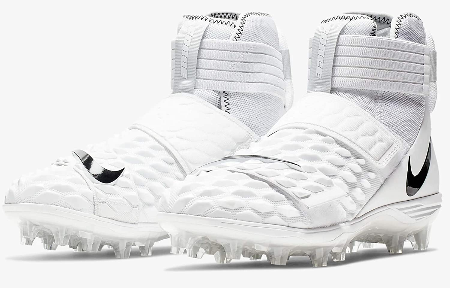 The Men’s Nike Force Savage Elite 2 Football Cleats bring the heat with this revamped release of the versatile, all-around-epic cleat. Designed specifically for linemen, these high top cleats take into account the player’s explosive speed and physical strength with their 15 triangle teeth on a wide cleat plate and the added triangle Kurim armor on the top of the cleat for extra robust protection during fast starts. The Nike Fastflex outsole and the Lunarlon foam midsole provide reactive, gripping traction and cushioning on this top performance cleat.