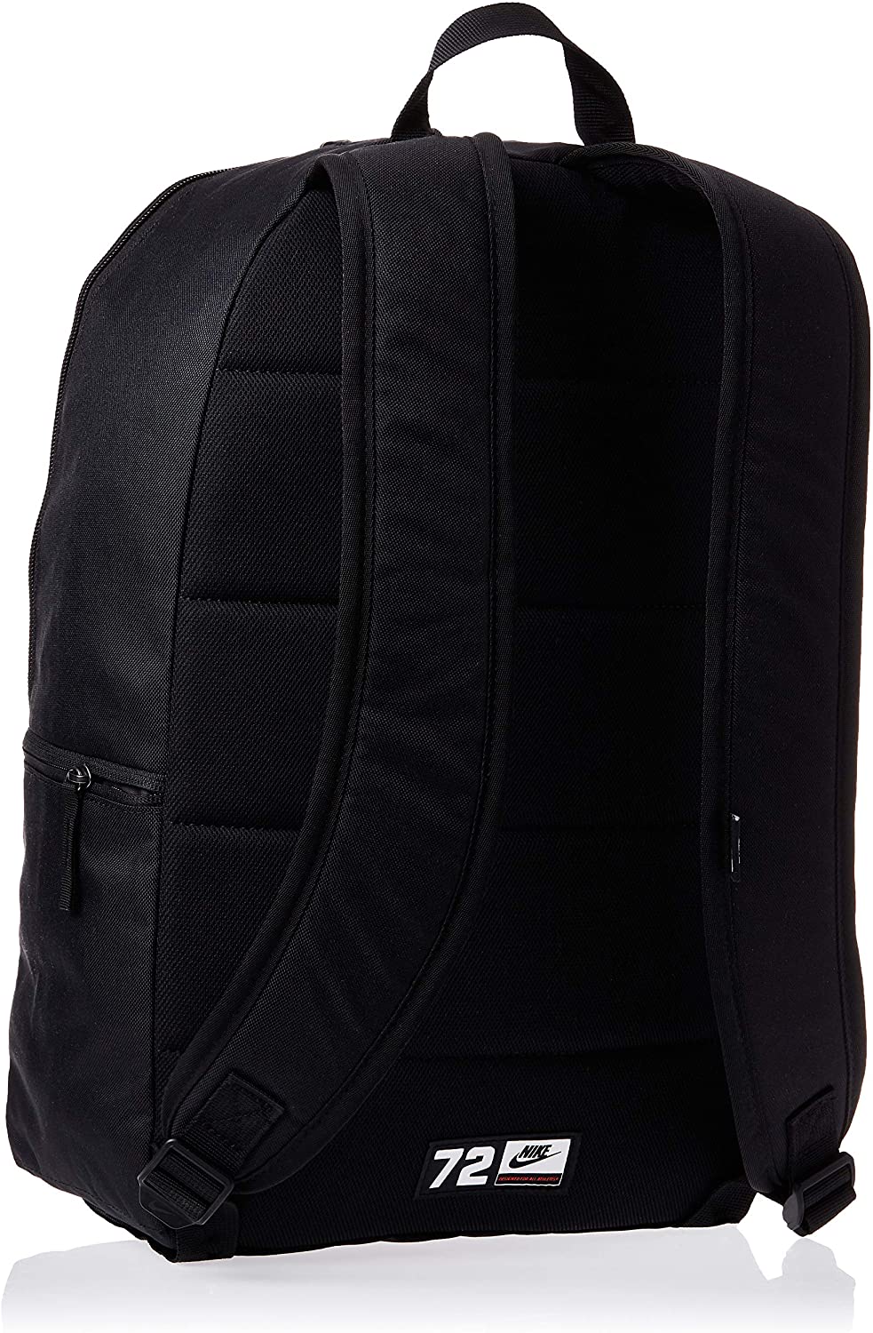 This pack combines simplicity and functionality with its clean design. Padded shoulder straps add an extra element of comfort while you carry your gear. 100% polyester Densely woven polyester provides heavyweight support A zippered main compartment offers room for gear Padded back panel and padded, ergonomically shaped shoulder straps for comfortable carrying Interior sleeve stores a laptop up to 15² Zippered front pouch provides small-item storage A haul loop at the top gives an alternative carrying optionContrast welded Swoosh design trademark Laptop sleeve fits most 15" laptops Dimensions: 17"h x 12"w x 6"d; Approx. 1,224 cubic inches