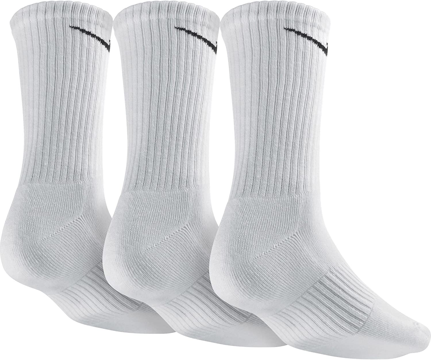Made with arch compression and sweat-wicking technology to help keep you dry, the NIKE Unisex Performance Cushion Crew Training Socks (3 Pairs) offer comfort and enhanced support when working out or competing.