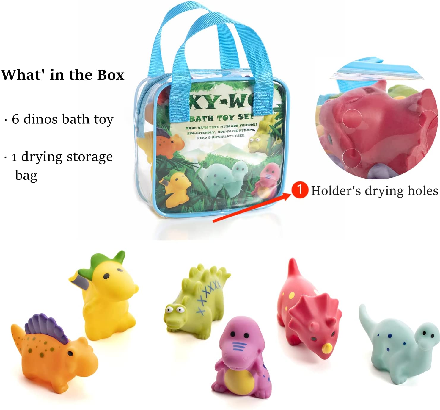 No Hole Dinosaur Baby Bath Toys for Toddlers/ Infants 6 - 12- 18 Months, Mold Free Bathtub Toys, 1 2 3 4 Years Old Kids (6 Pcs with Storage Bag)