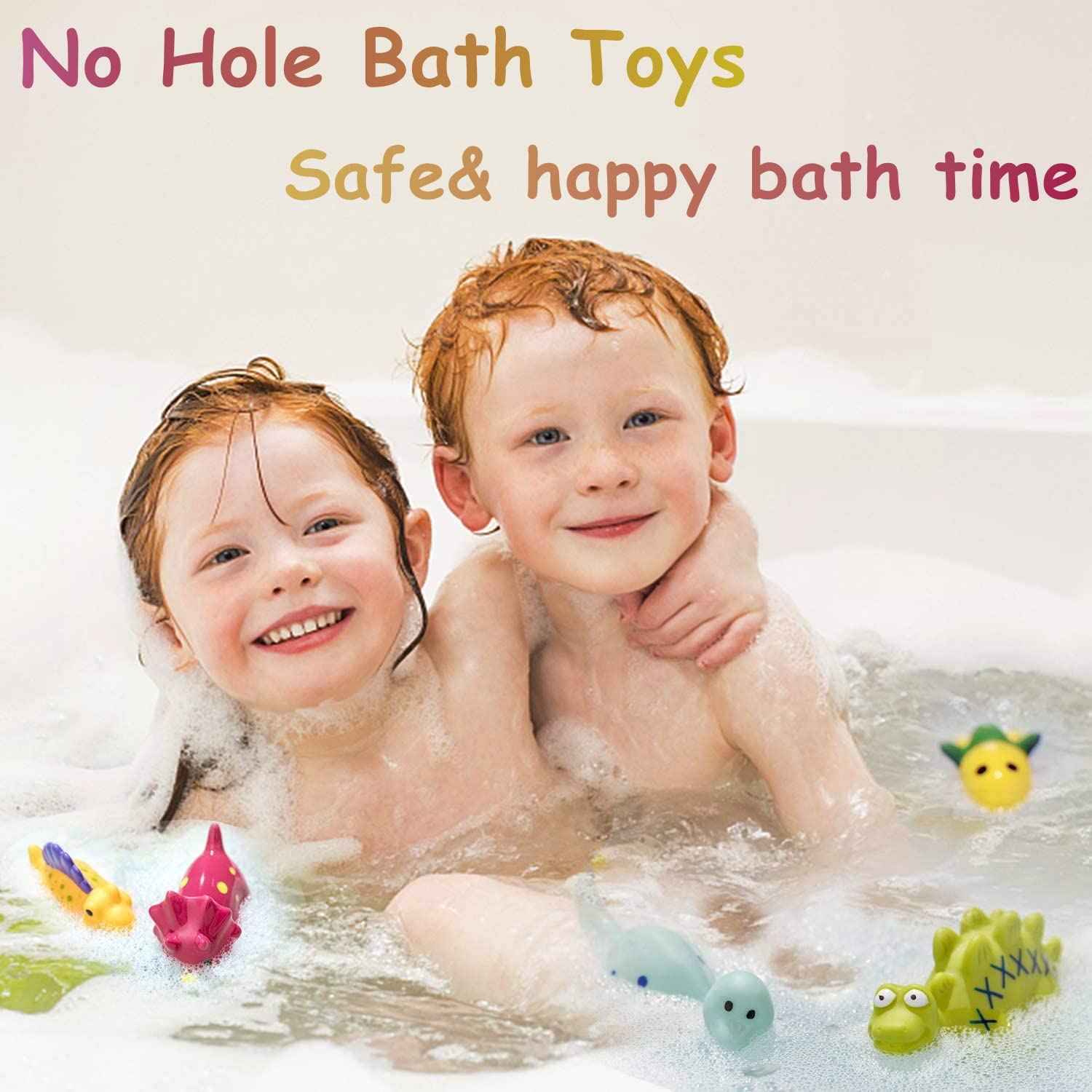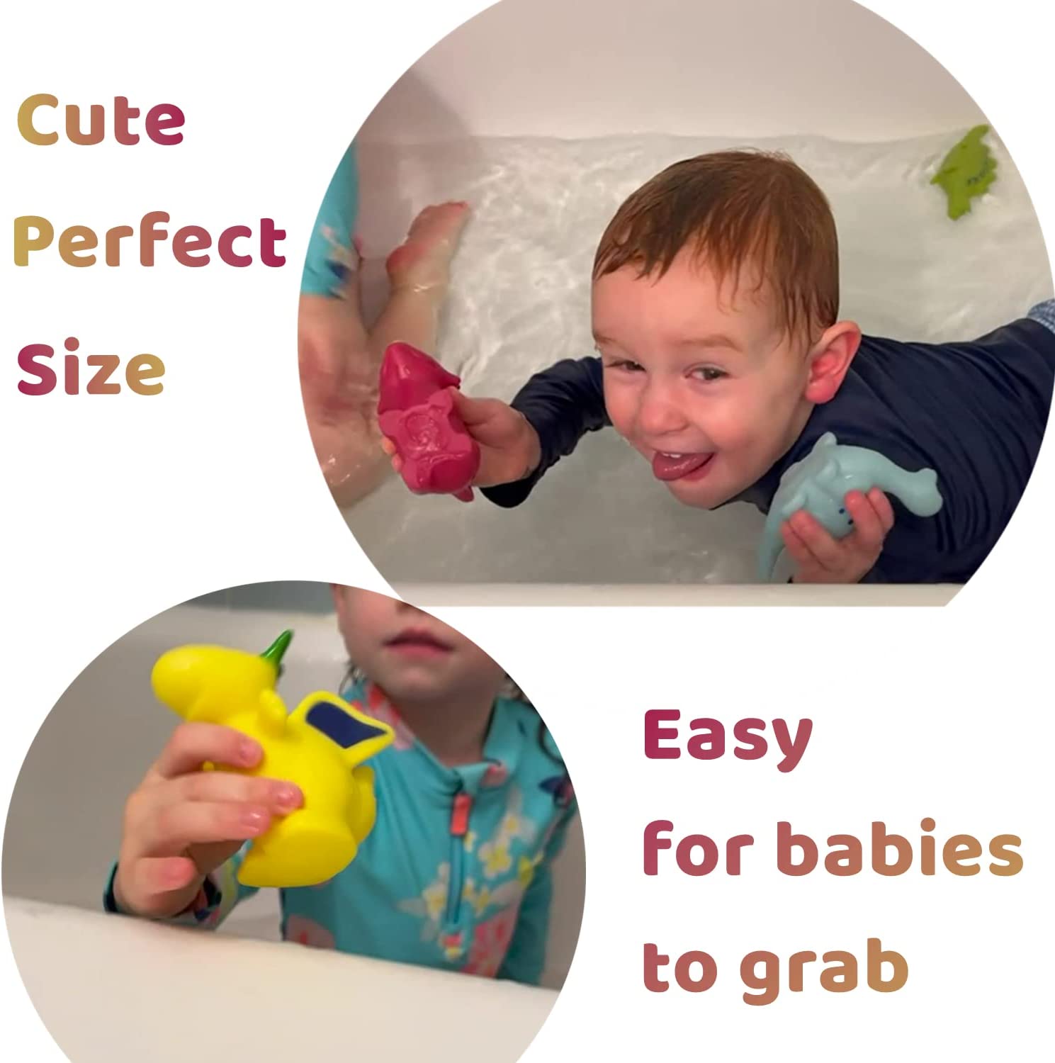 No Hole Dinosaur Baby Bath Toys for Toddlers/ Infants 6 - 12- 18 Months, Mold Free Bathtub Toys, 1 2 3 4 Years Old Kids (6 Pcs with Storage Bag)