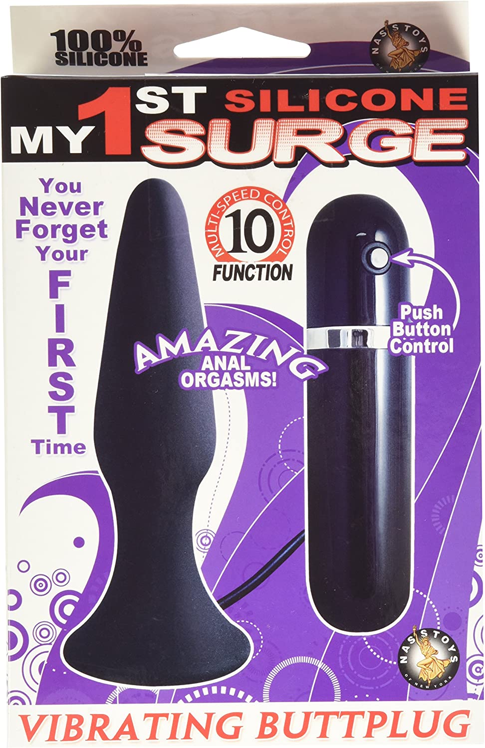 Novelties By Nasswalk My First Silicone Surge Vibrating Butt Plug 5" Inch Black