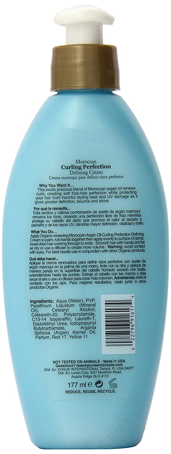 OGX Argan Oil of Morocco Curling Perfection Curl-Defining Cream, Hair-Smoothing Anti-Frizz Cream to Define All Curl Types & Hair Textures, Paraben-Free, Sulfated-Surfactants Free, 6 oz