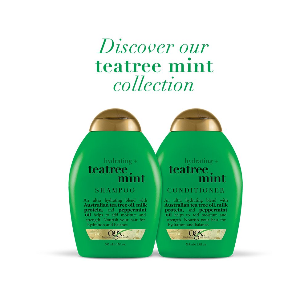 Bring balance back to a dry, itchy scalp with OGX Hydrating Tea Tree Mint Shampoo that has a hydrating blend of Australian tea tree oil and soothing peppermint extract to help moisturize and strengthen your hair and scalp. With a lightweight and sulfate-free formula, this refreshing shampoo is a great haircare product for dry and coarse hair, curly hair, frizzy hair and color treated hair types. Apply, wash, rinse and repeat from the scalp to the ends of your hair and follow up your routine with OGX Hydrating Tea Tree Mint Conditioner.