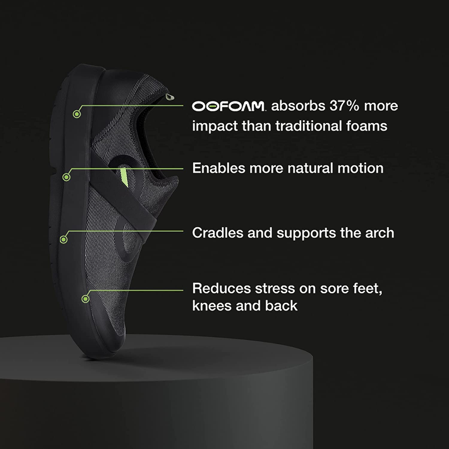 OOFOS OOmg Fibre Low Shoe, Black & Gray - Lightweight Recovery Footwear - Reduces Stress on Feet, Joints & Back - Durable, Breathable Fabric - Machine Washable