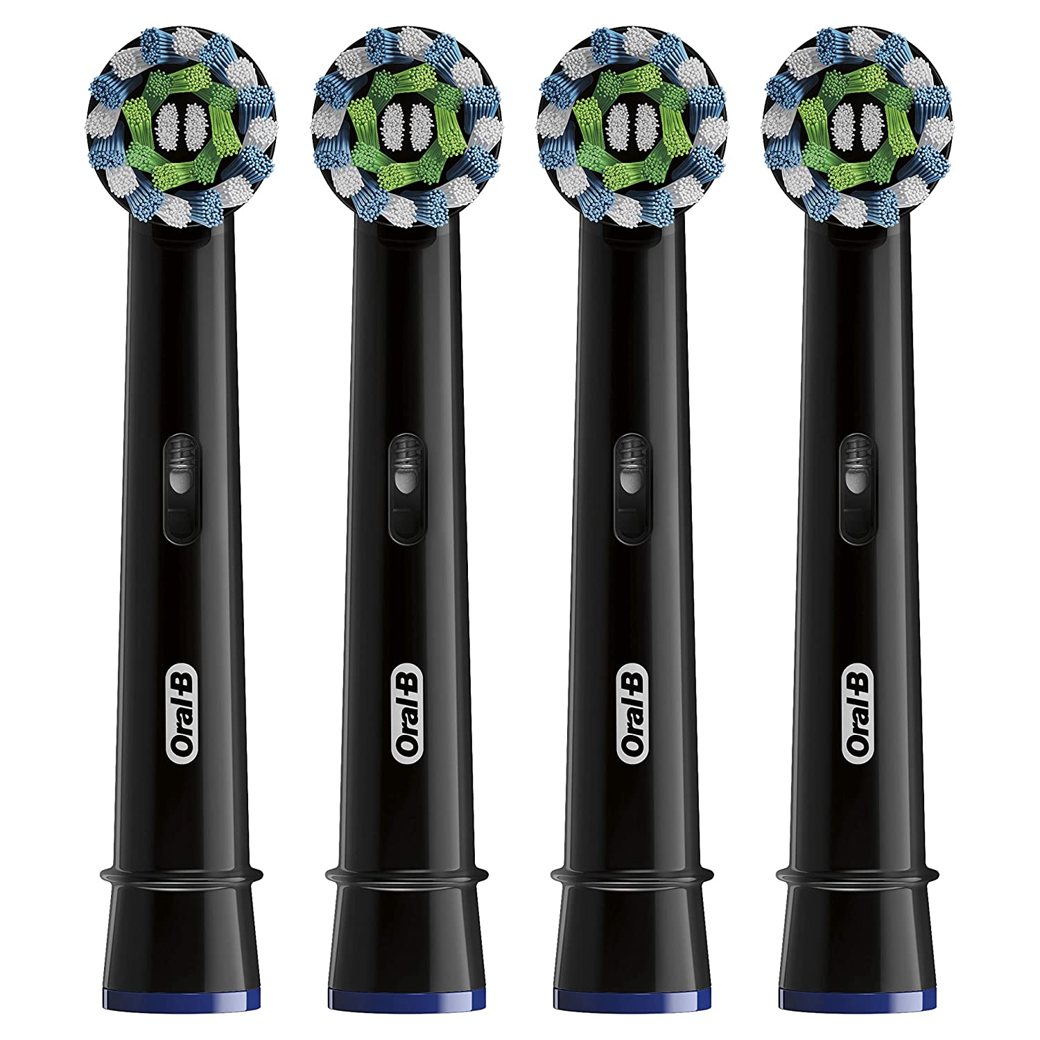 The Oral-B Cross Action Replacement Electric Toothbrush Head is Oral-B's most advanced technology. It features perfectly angled bristles to remove 100% more plaque for a superior clean. The round brush head is inspired by dental professional tools for a tooth-by-tooth clean, with specially engineered bristles. Additionally, the Bacteria Guard Bristles help keep your brush clean for up to 3 months by inhibiting microbial growth that may affect the bristles. The bristles do not kill bacteria in the mouth or protect you against disease. Always clean the product thoroughly after use. Compatible with the entire lineup of Oral-B powered by Braun rechargeable electric toothbrushes excluding Pulsonic, Sonic Complete and Vitality Sonic models. vs. a regular manual toothbrush when used on Pro1000 and up handles