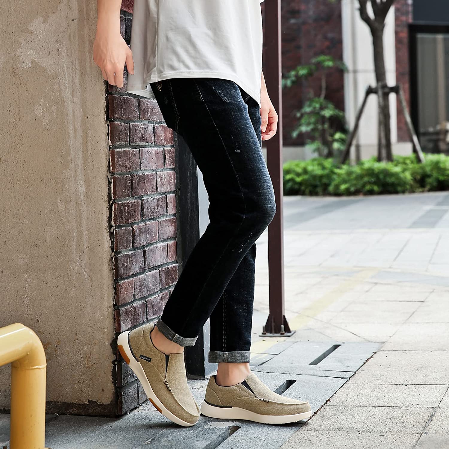 OrthoComfoot Men's Slip On Loafers,Arch Support Boat Shoes for Extra Cushioning and Pain Relief,Canvas Leisure Vintage Flat Walking Shoes
