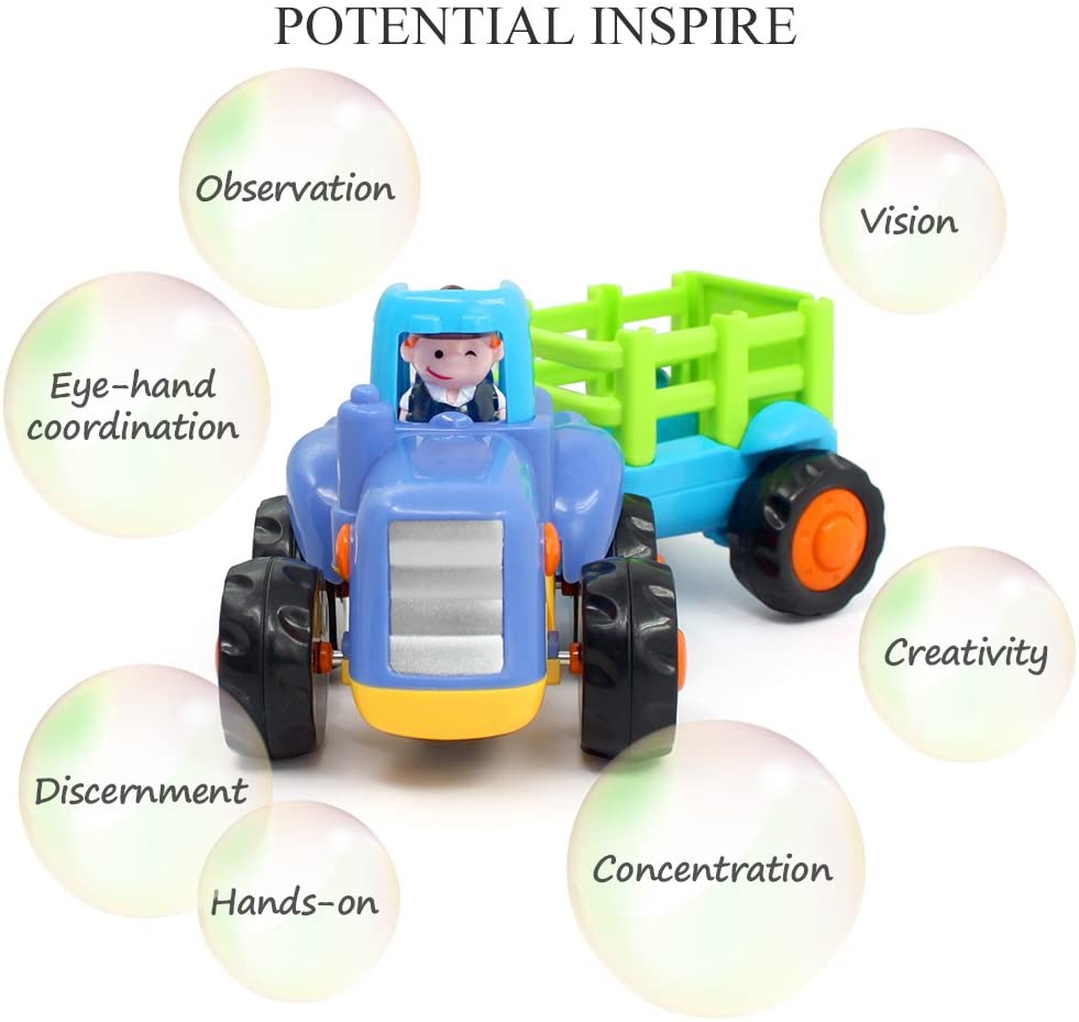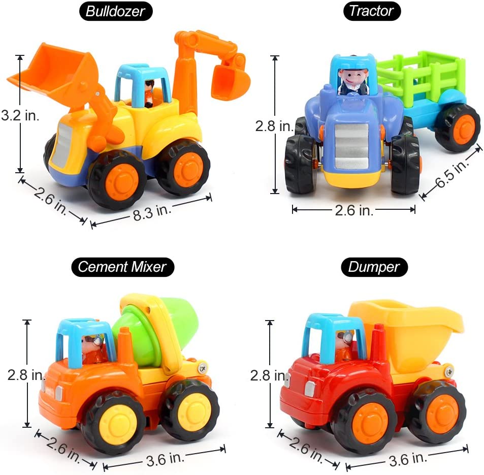 ORWINE Inertia Toy Early Educational Toddler Baby Toy Friction Powered Cars Push and Go Cars Tractor Bulldozer Dumper Cement Mixer Engineering Vehicles Toys for Children Boys Girls Kids Gift 4PCS