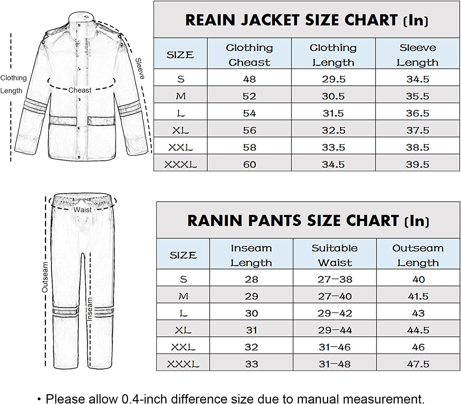 Ourcan Rain Suits for Men Classic Rain Gear Waterproof Rain Coats Hooded Man's Rainwear Fishing Rain Jacket and Rain Pants
