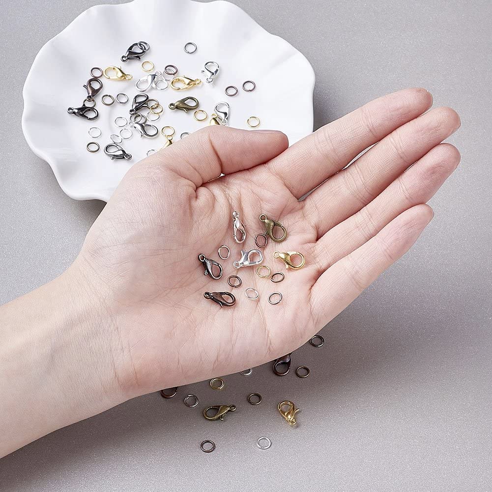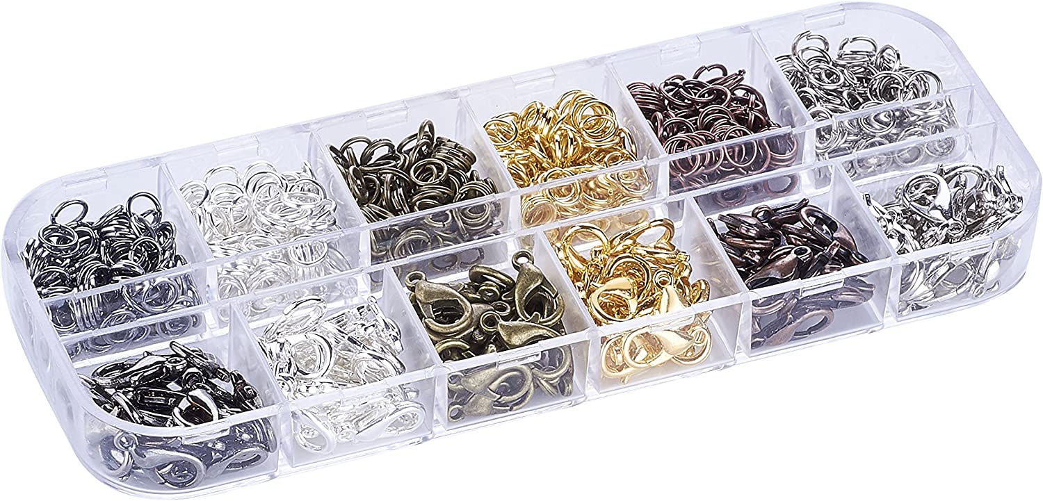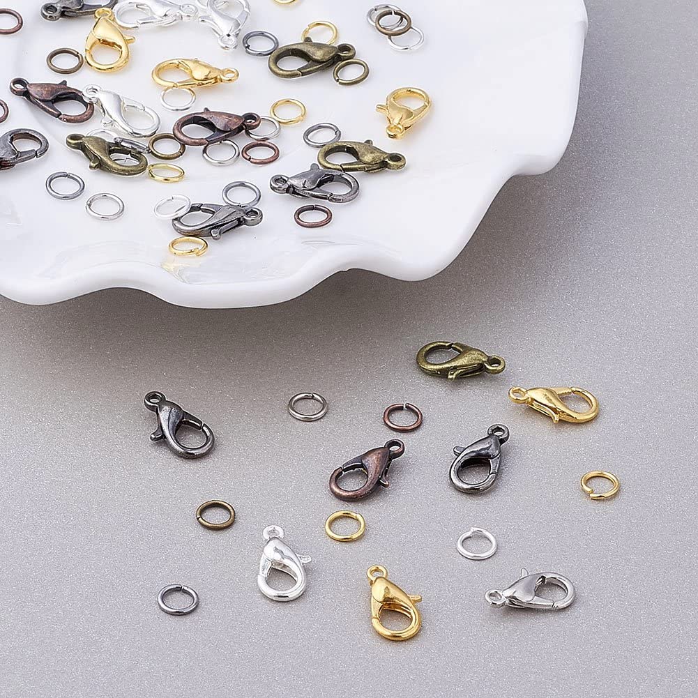 Pandahall 6 Colors Jewelry Finding Kits with 5mm Open Jump Rings & 12x6mm Lobster Claw Clasp for DIY Bracelet Necklace Jewelry Making
