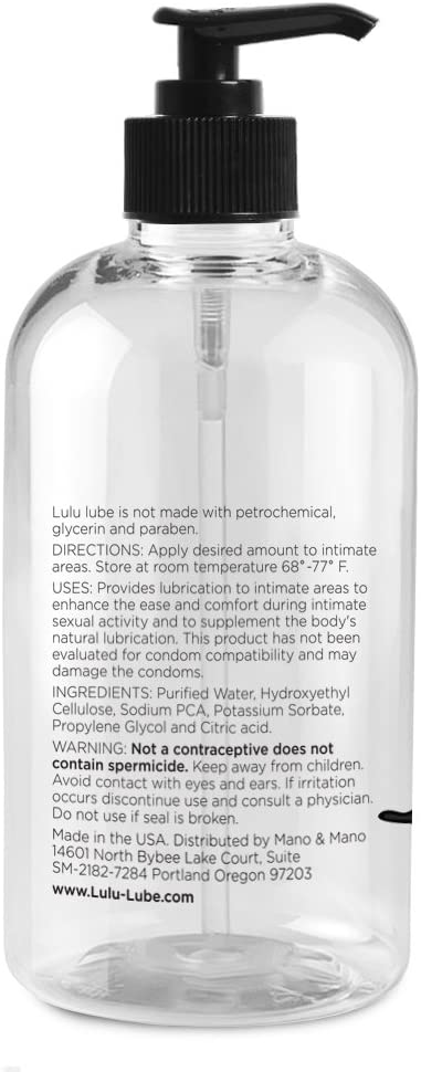 Personal Lubricant. Lulu Lube Natural Water-Based Lubes for Men and Women. 16 oz. - Lubricants Made in USA - 100% Unconditional Money Back