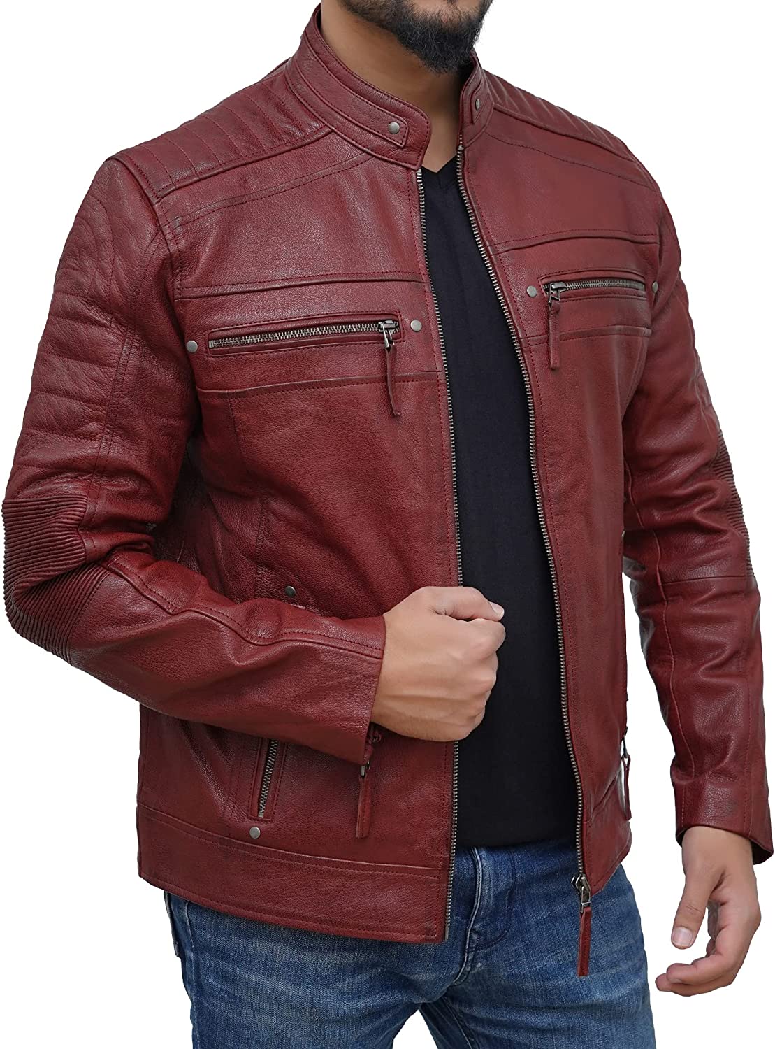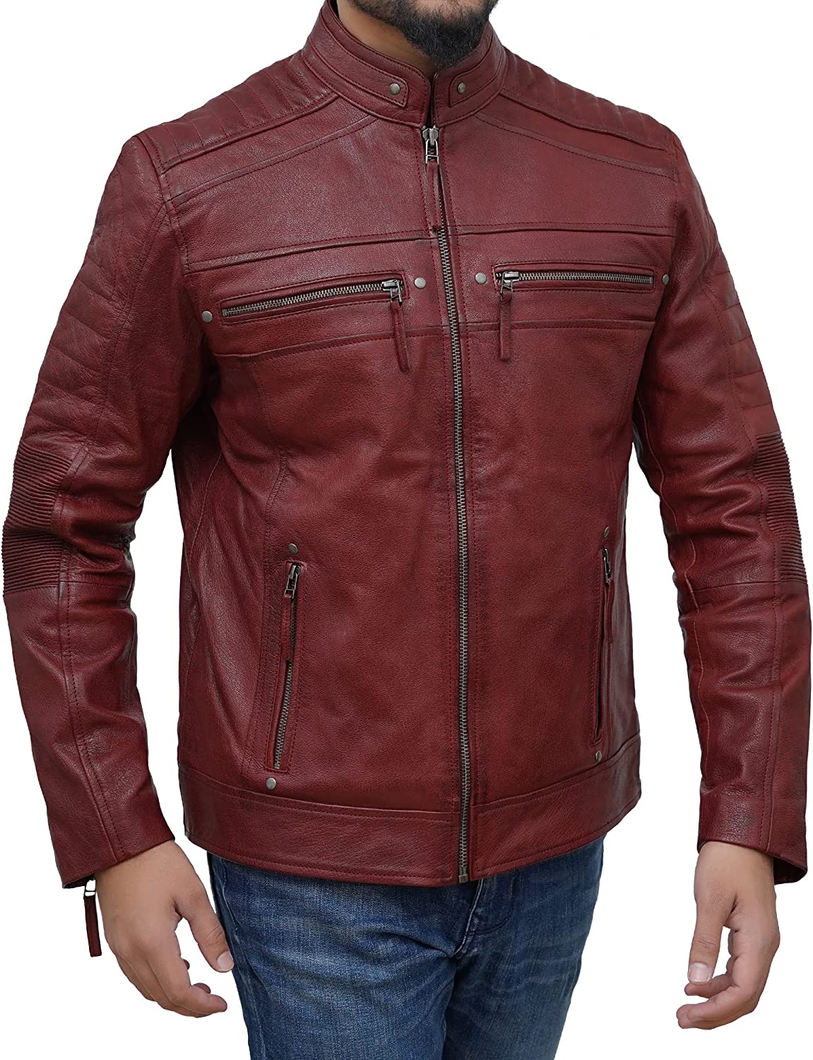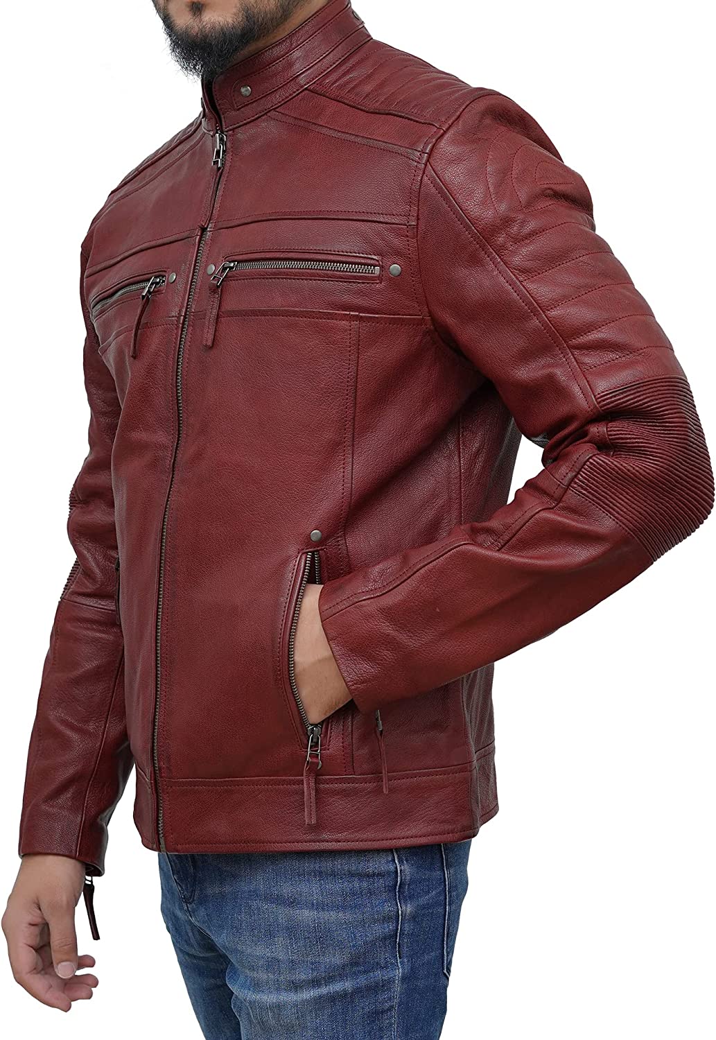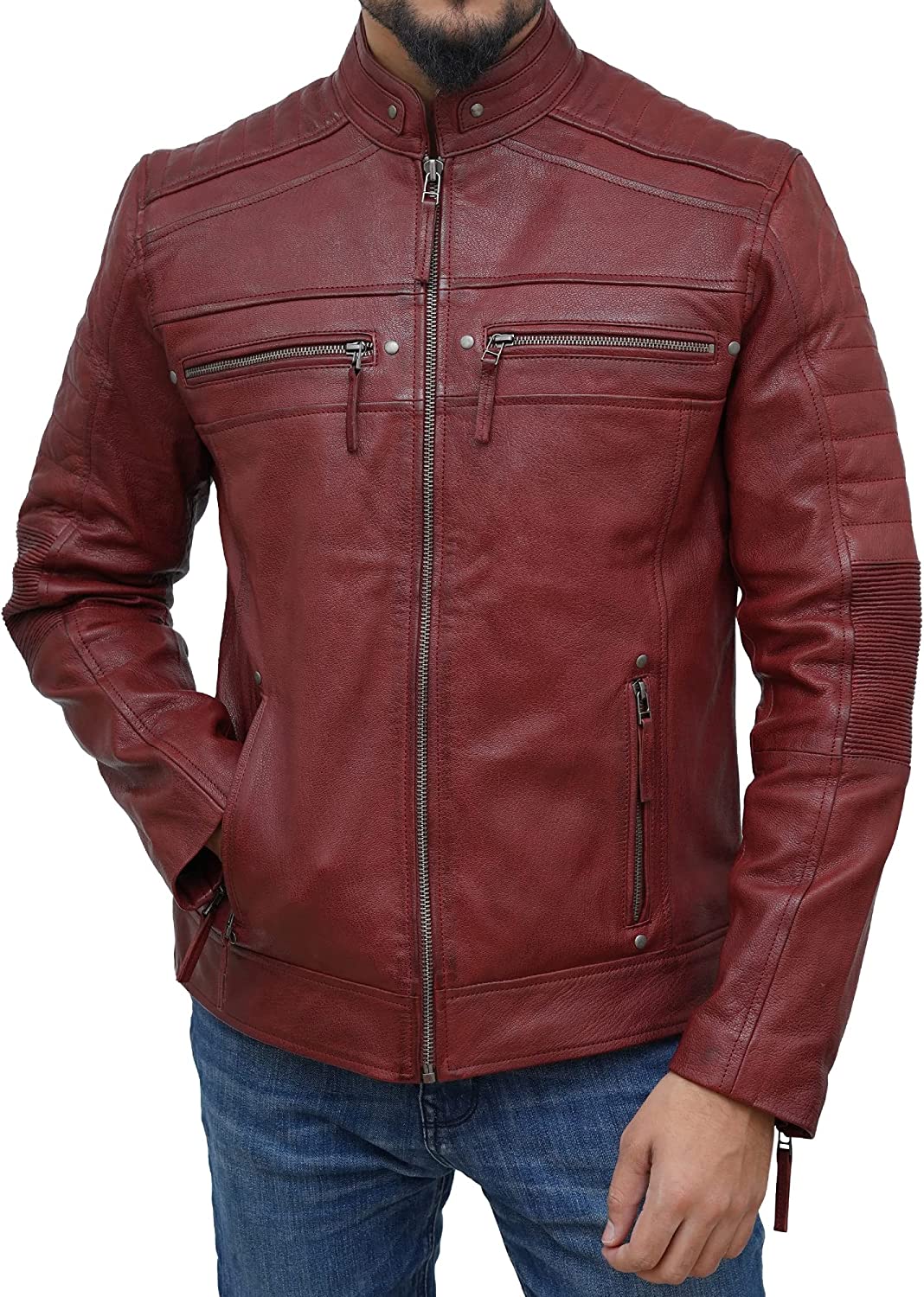 Petersign Maroon Leather Jacket Men Motorcycle Biker Real Lambskin Casual Jackets