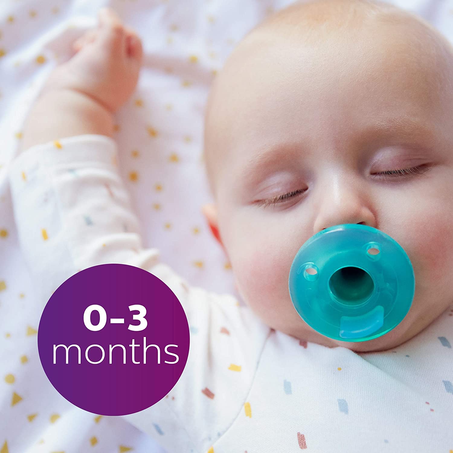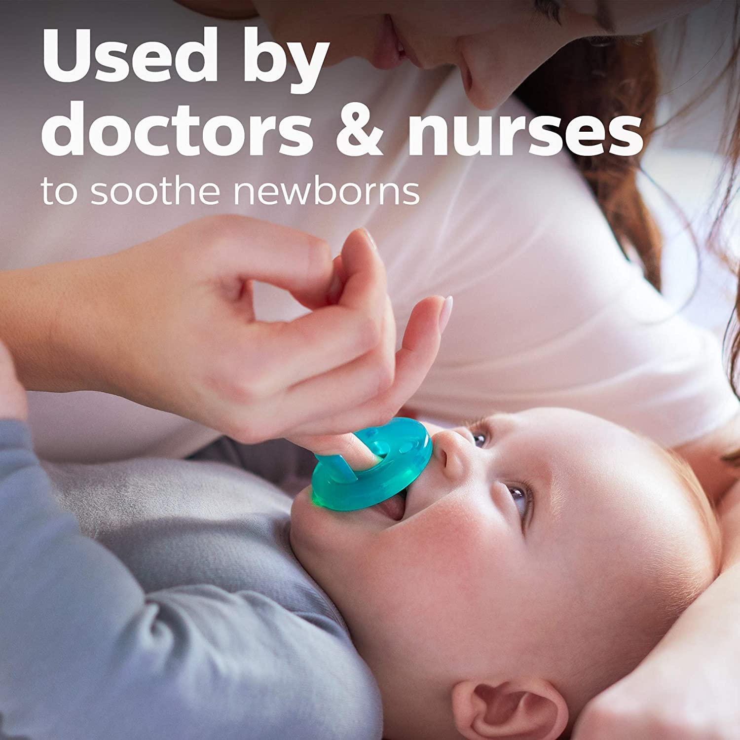 Philips Avent Soothie is the pacifier brand distributed in hospitals nationwide, used by doctors & nurses to soothe newborns. Its one piece construction is specially sized and shaped for babies 0-3 months old and adheres to the American Academy of Pediatrics guidelines. Soothie is designed to calm and soothe without inhibiting normal oral development, like the natural development of teeth and gums. Transparent, tasteless and odorless, the nipple is strong and smooth. It won't become sticky, discolored or misshapen. Soothie is made of hospital-grade, BPA-free and latex-free silicone for strength, comfort and durability. It is dishwasher safe and can be sterilized in a sterilizer. Soon all of our Soothies will say Philips Avent; but for a while, you may see some products that say “Soothie, Children’s Medical Ventures” and others that say “Philips Avent” in market. Both are real, authentic Philips Avent Soothies. The product meets CPSC safety requirements and the same high quality standards you’ve come to expect from us.