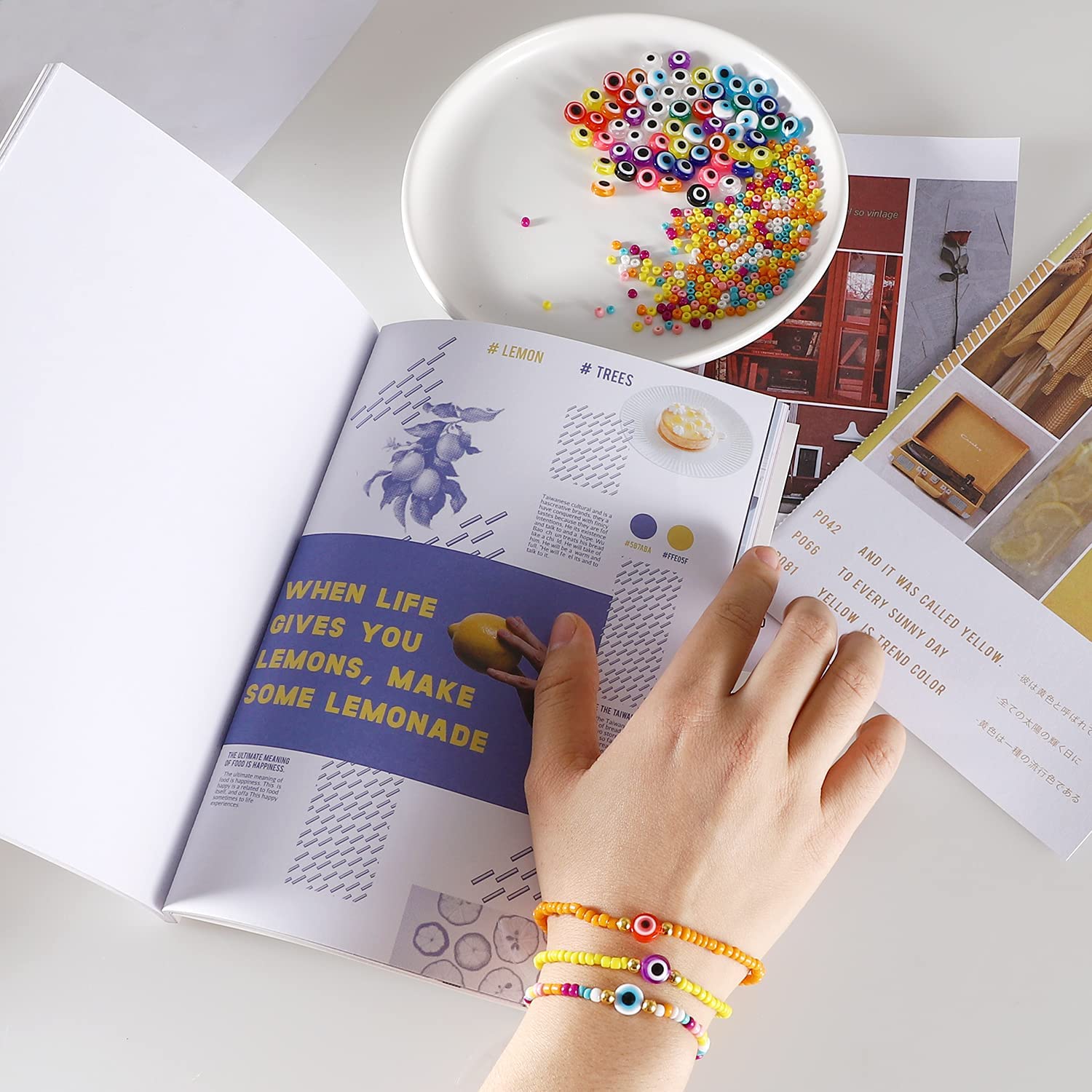PHUNTTEK 2400pcs Seed Beads and Evil Eye Beads for Jewelry Making, 3mm Glass Seed Beads 8mm Flat Evil Eye Easter Beads Decors Colorful Bracelet Beads Kit for Bracelets Making DIY Beading Supplies