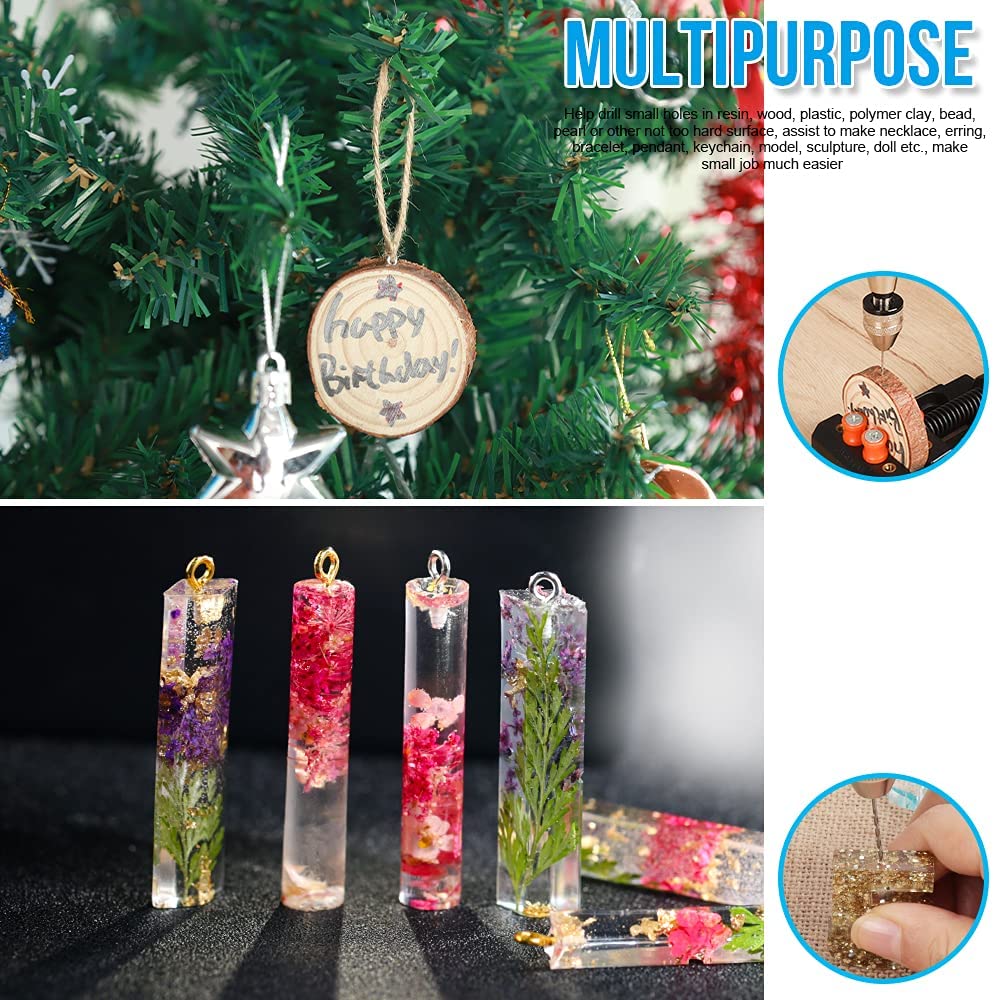 Pin Vise for Resin Casting Molds, LEOBRO Steel Hand Drill, Resin Drill with 10 PCS Drill Bit, Precision Hand Drill Tools for Epoxy Resin Arts Crafts, Wood, Clay, DIY Resin Keychain Jewelry Making