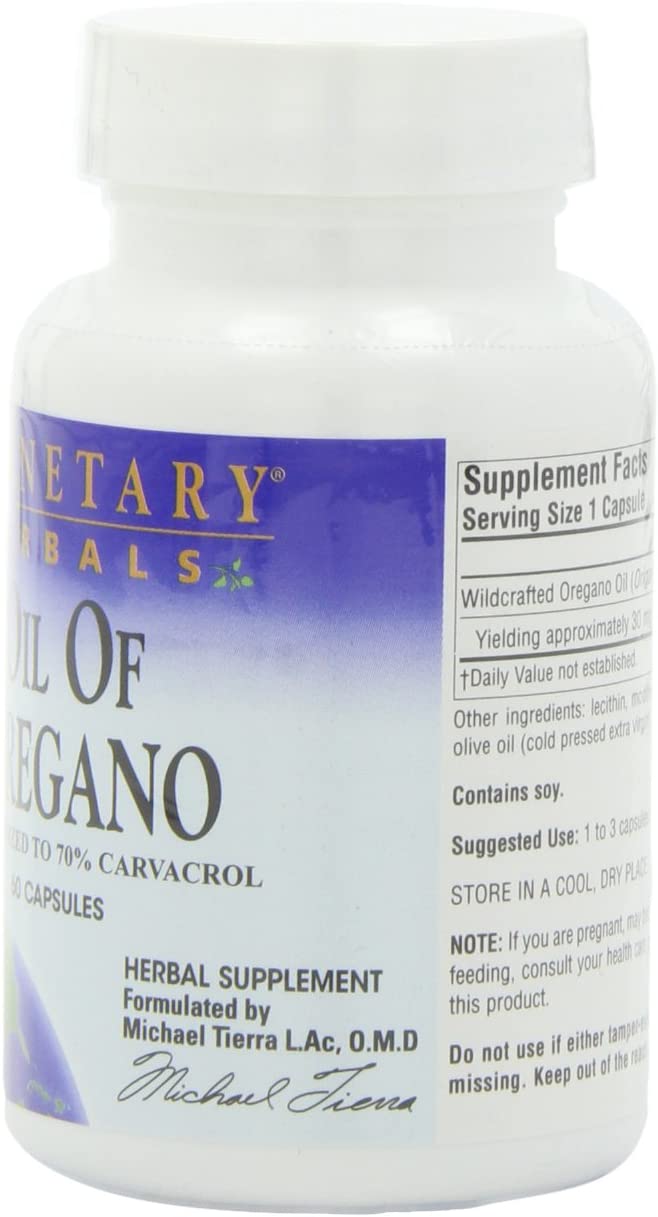 Herbal supplement. Standardized to 70% carvacrol. Planetary Formulas Oil of Oregano is from wild crafted true oregano (Origanum vulgare), an aromatic herb that is native to the Mediterranean region. Traditionally, oregano was used to support digestive, re