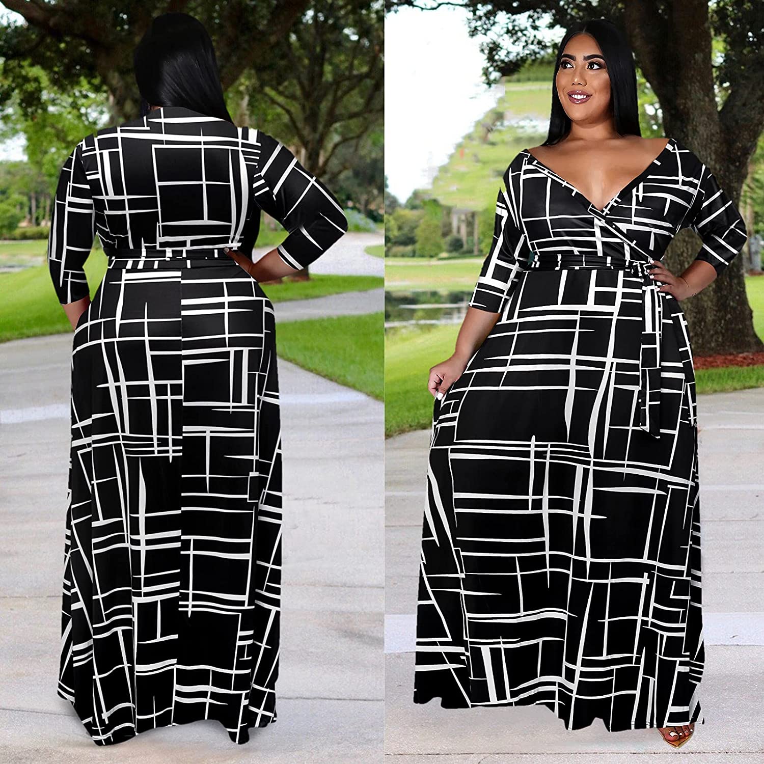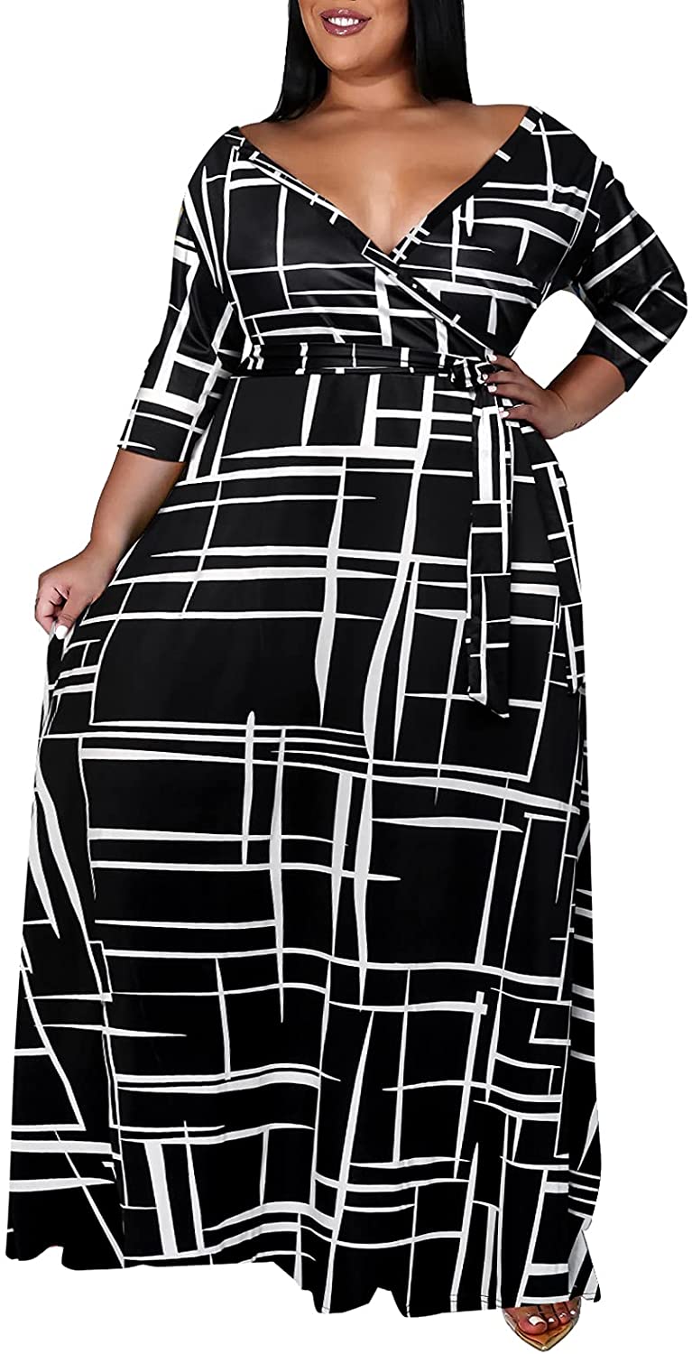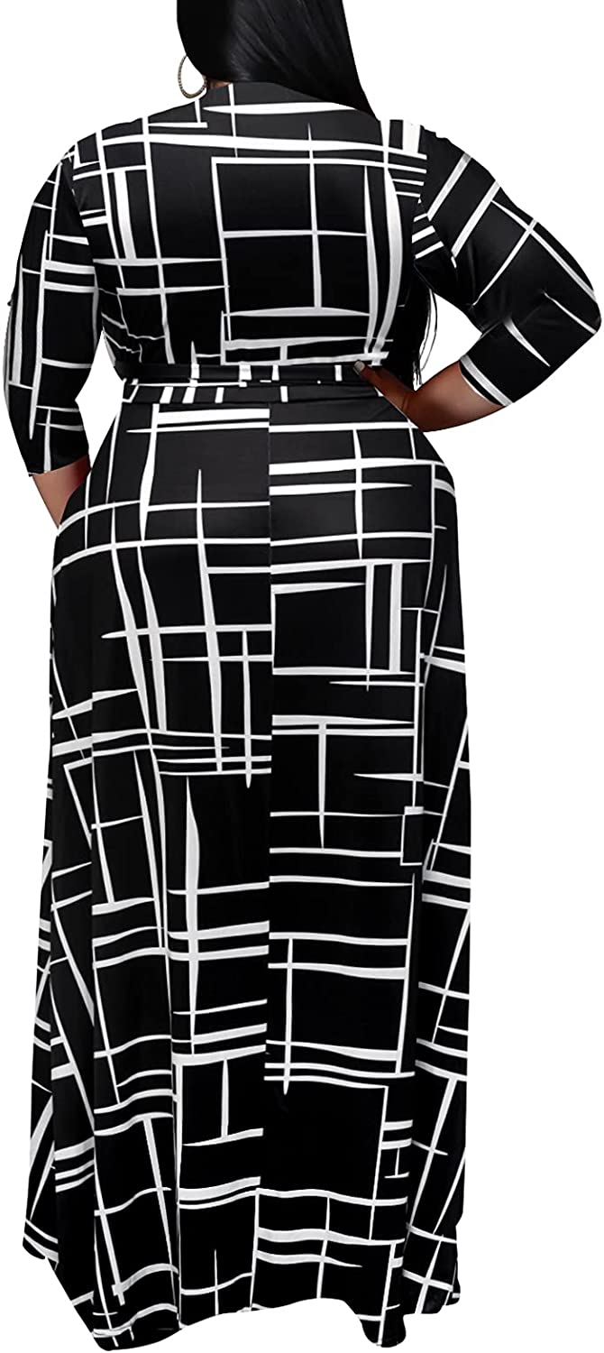 Plus Size Dresses for Women Floral Maxi Dress Flowy 3/4 Sleeve with Belt