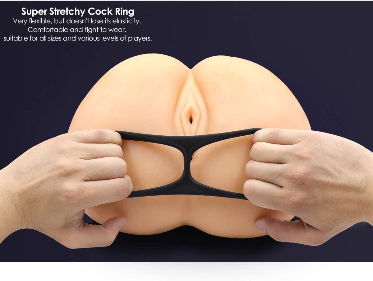 Premium Stretchy Silicone Penis Ring for Enhancing Erection, Smooth Soft Cock Ring Stimulate Dick Stronger Harder Longer Adult Sex Toys for Male and Couples Sexual Pleasure Stimulation (Black)