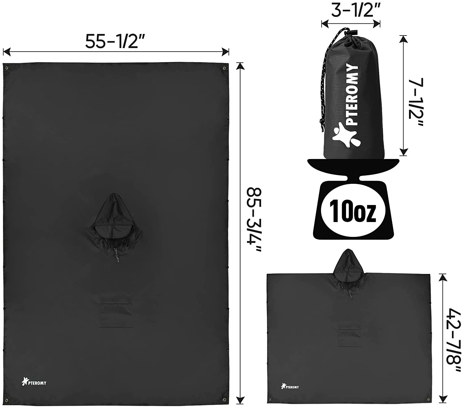 PTEROMY Hooded Rain Poncho for Adult with Pocket, Waterproof Lightweight Unisex Raincoat for Hiking Camping Emergency
