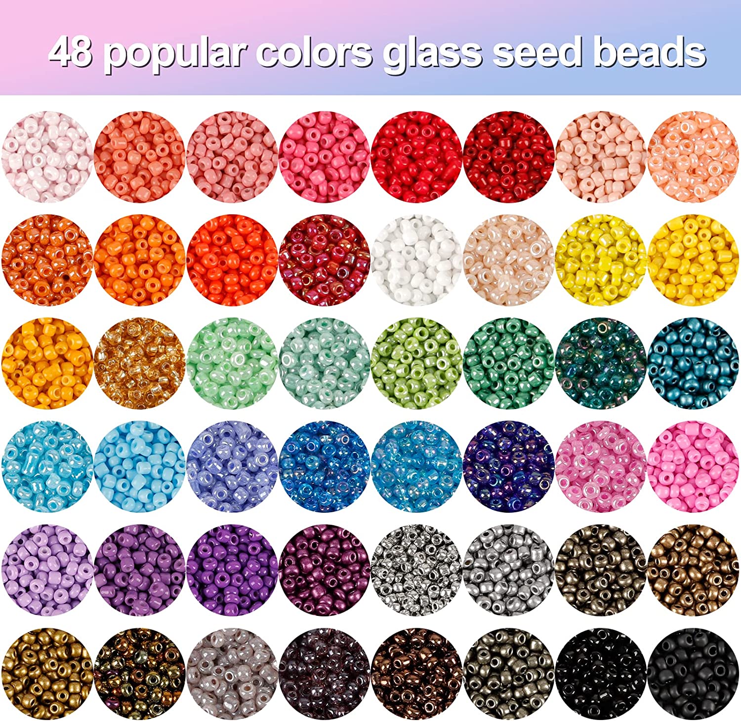 Quefe 36000pcs Glass Seed Beads 2mm Beads 48 Colors 12/0 Small Bracelets Beads and 260 Letter Beads for Jewelry Making Crafts