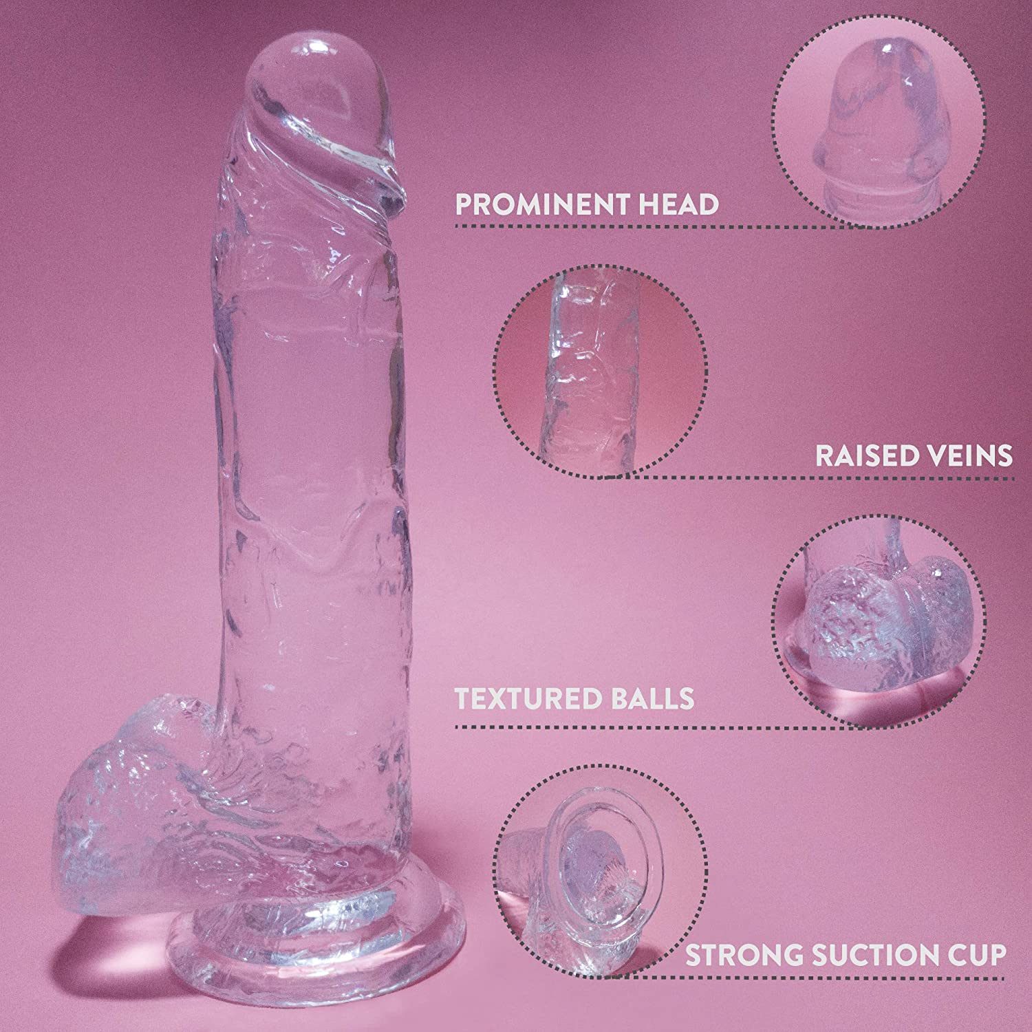 Realistic Dillidos for Women & Men| Body-Safe Clear Jelly Thick Soft Lifelike Flesh Realskin Feel Suction Cup Dildo | Strap On Dildo Harness G Spot Prostate