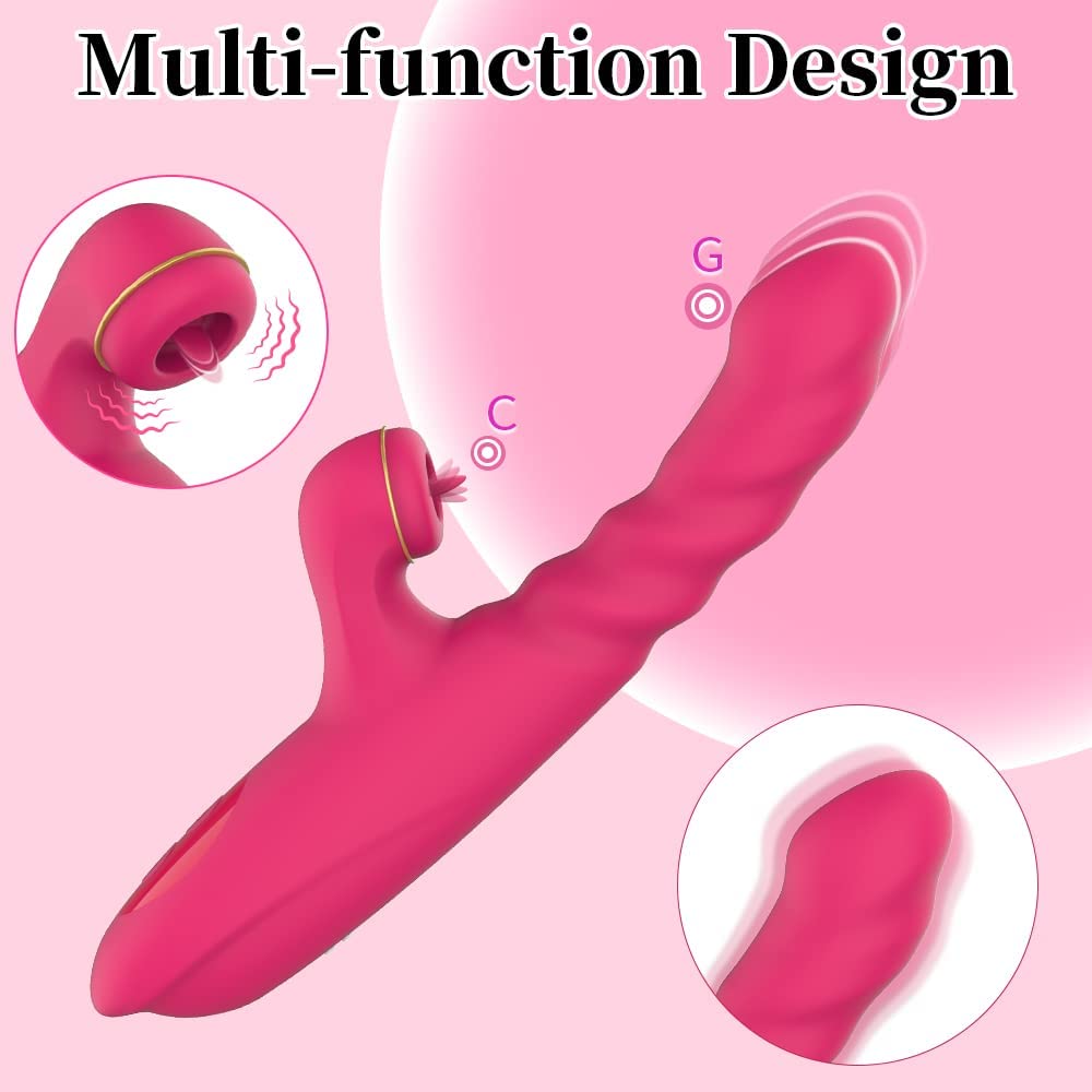 Realistic Dildo, Clitoral Licking G Spot Thrusting Rabbit Vibrator with Heating, Clitoris Nipples Anal Vaginal Rose Stimulator for Quick Orgasm, Adult Waterproof Rechargeable Female Sensory Sex Toys