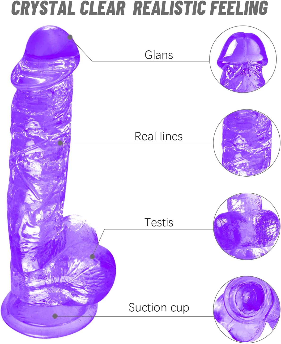 Realistic Dildo Feels Like Skin, 8.5 Inch Dildos with Strong Suction Cup for Hands-Free Play, Lifelike Huge Silicone Dildo for Beginners Body-Safe Material and Adult Sex Toys for Women, Purple Dildo