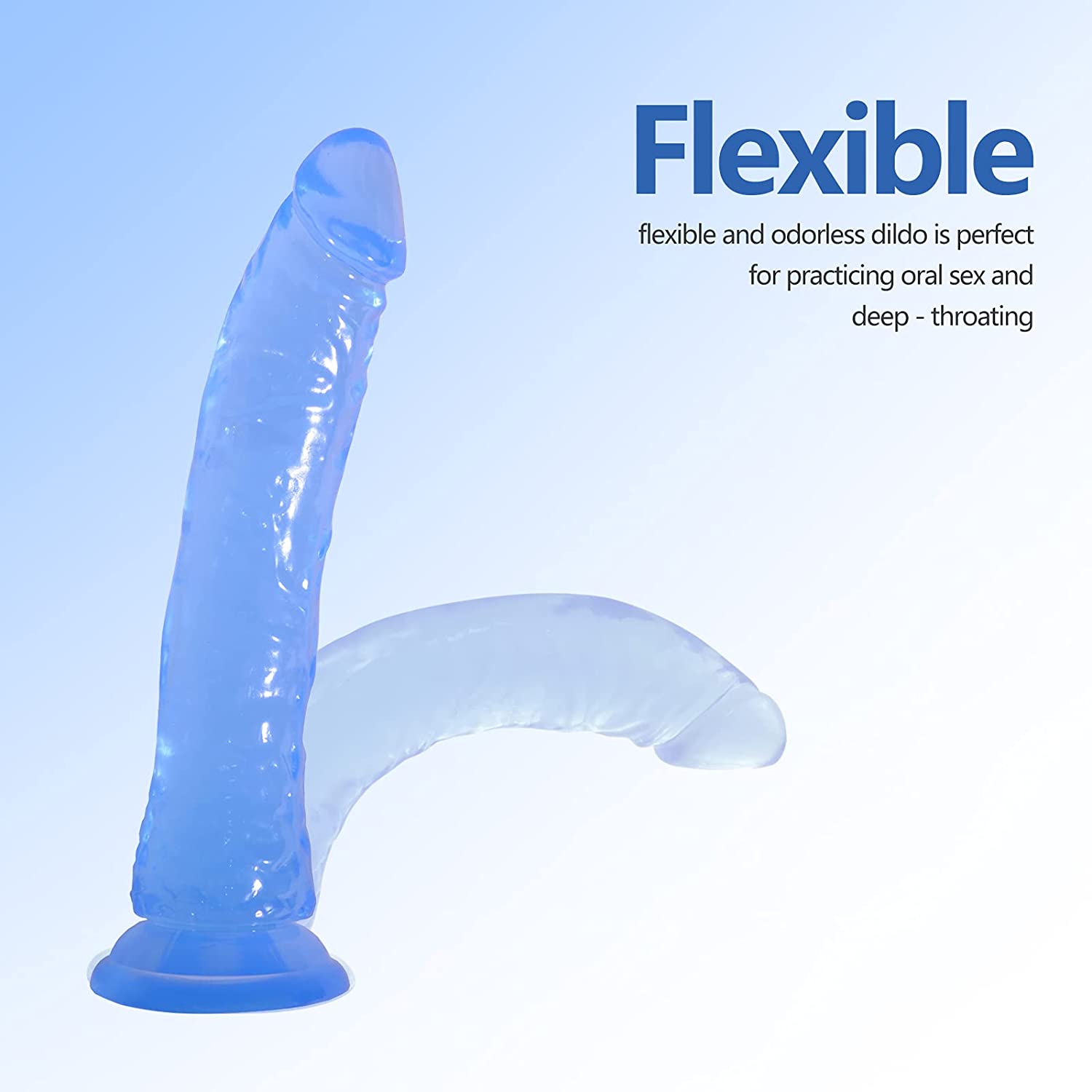 Realistic Dildos, 7.87 inch Blue Jelly G-Spot Dong Stimulator with Strong Suction Cup for Hands-Free Play, Flexible Soft Crystal Penis Adult Sex Toy for Women Vaginal, Anal Orgasm