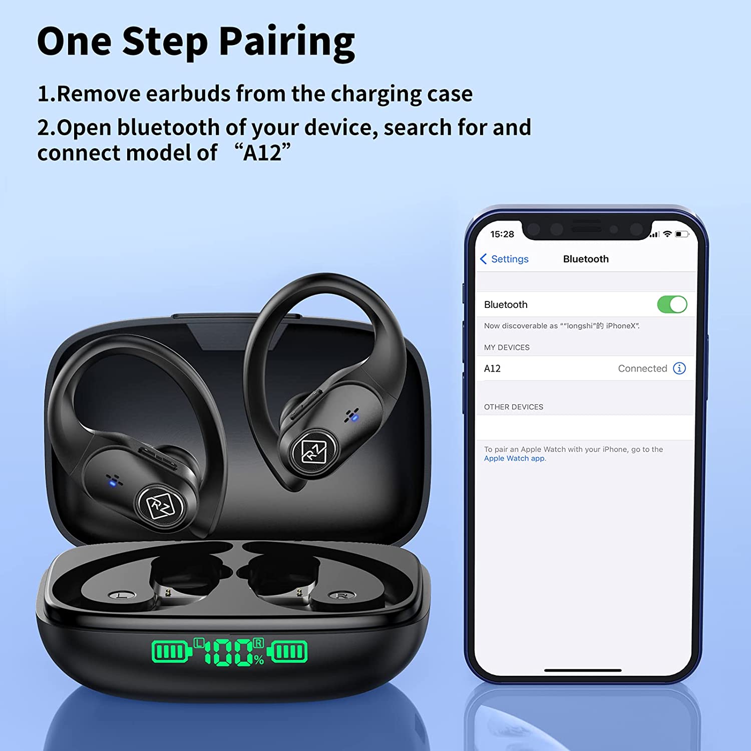 RIZIZI Wireless Earbuds Bluetooth Headphones with Wireless Charging Case and LED Digital Display 40hrs Playtime Built in Mic Waterproof Earphones with Over Earhooks Bass Sound Headset for Sport Gym