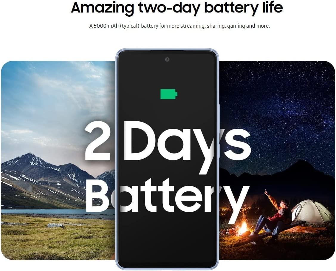 LONG-LASTING BATTERY: Your busy life deserves a battery built for busy; Whether you’re taking a video call on your commute, catching up on your favorite show or with friends and family, your long-lasting, super fast charging battery has your back. POWERFUL PERFORMANCE: The very best of Galaxy A Series gives you awesomely smooth streaming of your favorite content with the most powerful performance in its series and awesomely fast speeds to download shows and movies — all at the speed of 5G. EXPANDABLE STORAGE: Galaxy A53 5G gives you the A Series’ biggest built-in storage and lets you enjoy more memories and entertainment; With an additional 1TB of expandable storage with a microSD card, you can hold on to every smile and relive every epic vacay. INTELLIGENT CAMERA: Capturing content is as easy as pose, shoot and share with A53 5G’s intelligent camera; Single Take lets you capture video, pictures and more with just one tap, while image stabilization technology makes sure every clip is crystal clear. INFINITE DISPLAY: Whether you’re streaming short videos or kicking back to complete a whole series, the Galaxy A53 5G Super AMOLED display is built to keep you entertained, with incredible color clarity that translates into awesome resolution. MODERN DESIGN: Life happens, but Galaxy A53 5G*** provides a premium slim design that is built to last through those unpredictable moments; The body was engineered to endure, so you can worry less around water and dust. PRIVACY & SECURITY: Protect your data with multilayered Knox Security; Also, with Private Share, you can set time limits and expiration dates on all shared files, revoke access at any time and ensure the intended recipient is the only one who can open your files — and that they cannot send or screenshot your stuff.