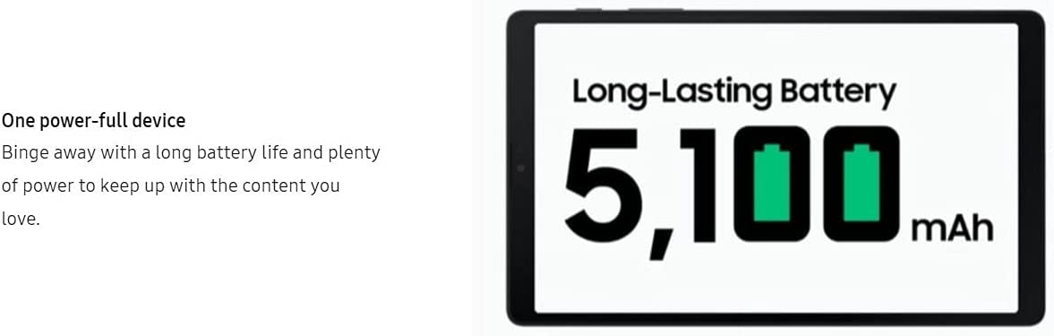 Endless entertainment awaits: Meet the Galaxy Tab A7 Lite, the tablet that’s made to be shared. With a compact 8.7” screen, sturdy metal frame, powerful performance and plenty of storage, your whole family will love it. Light and portable: With its compact 8.7” screen and slim design Galaxy Tab A7 Lite is perfectly sized for entertainment on the go. Performance that won't let you down: Enjoy super-smooth streaming on your tablet with minimal interruptions and up to 1 TB of expandable storage for all your important photos, videos and apps. One power-full device: Binge away with a long battery life and plenty of power to keep up with the content you love.