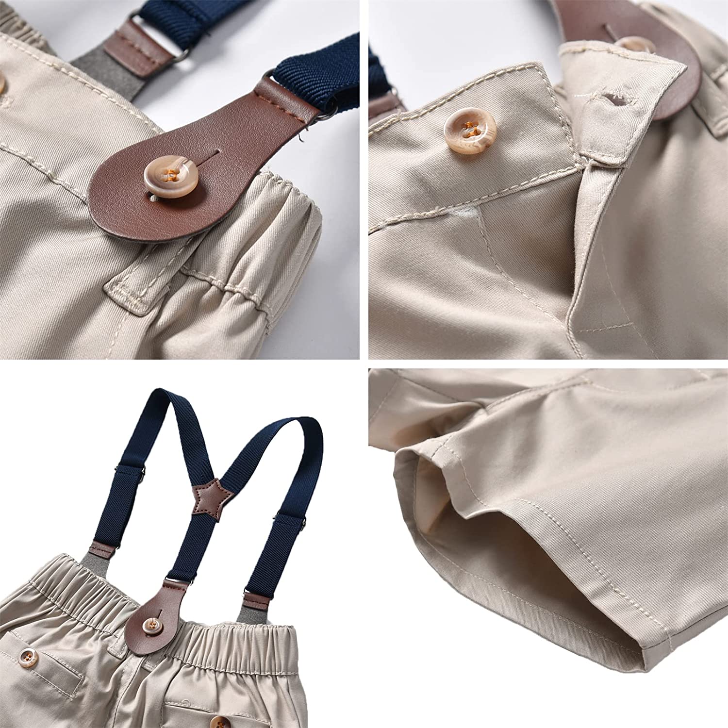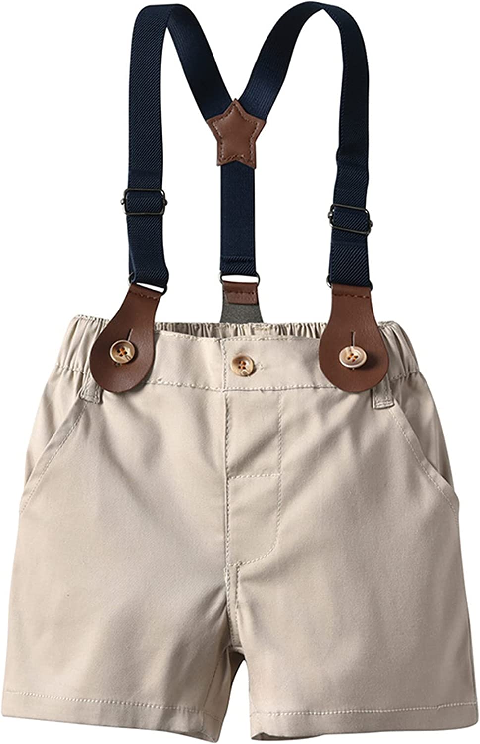 SANGTREE Baby Boys Gentleman Suit Clothes, Dress Shirt with Bowtie + Suspender Shorts