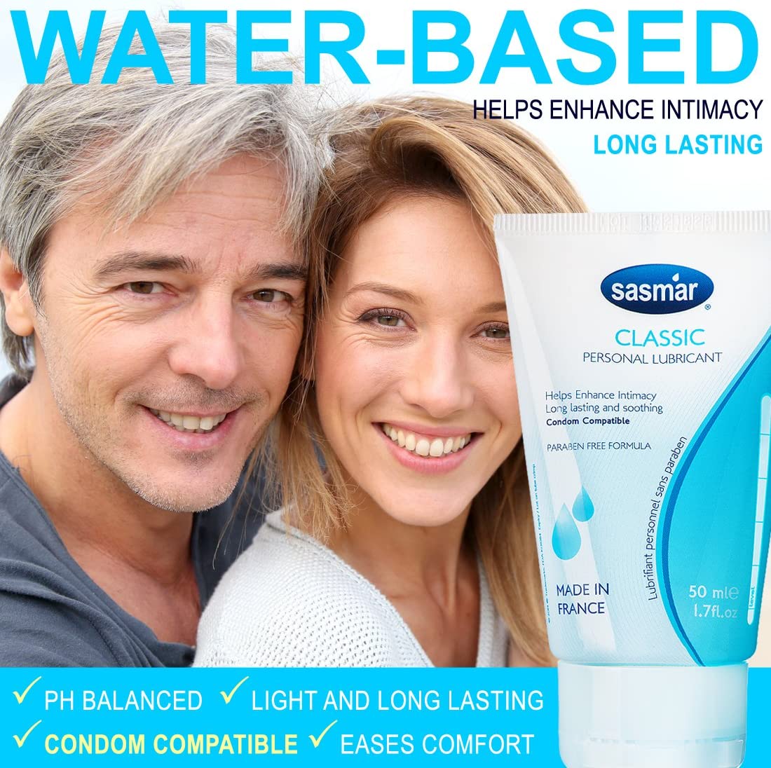Considered the best personal lubricant brand by many in over 70 countries. Sasmar lubricating products actually help to supplement natural moisture during sexual intercourse and increase comfort during intimacy for both partners. Sasmar Classic is a silky smooth long lasting water-based personal lubricant made paraben free to increase intimacy, ease discomfort and relieve vaginal dryness.