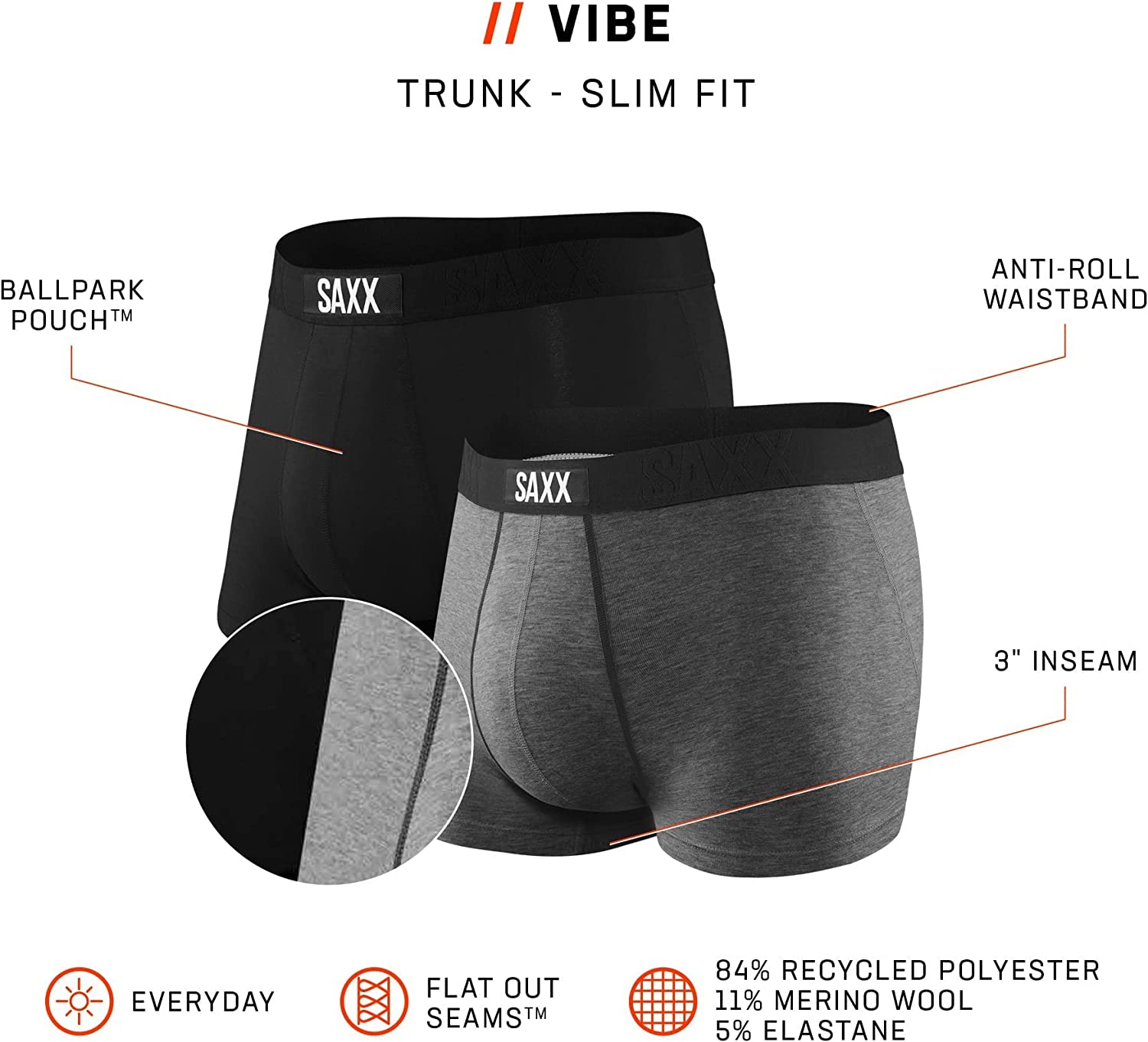 SAXX Men's Underwear – VIBE Super Soft Trunk Briefs with Built-In Pouch Support - Pack of 2, Underwear for Men